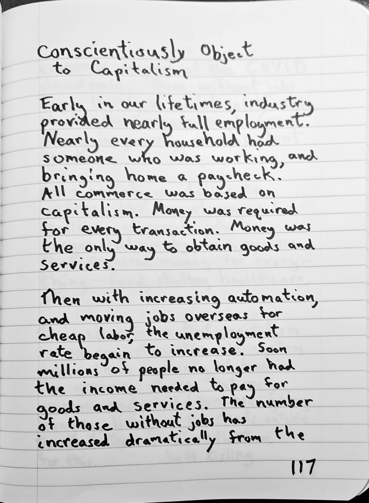 It is clear to me that capitalism is an unjust, untenable system when there is plenty of food in the grocery stores, but men, women and children are going hungry, living on the streets outside the store. There is no justification for this.