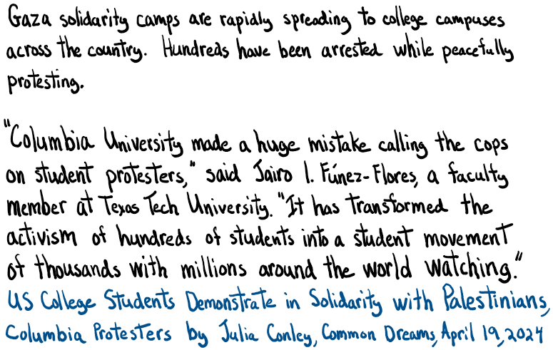 Gaza solidarity encampments are rapidly spreading to college campuses across the country. Hundreds have been arrested while peacefully protesting.
