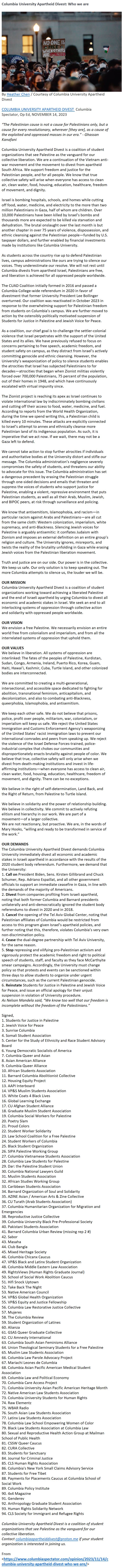 Secret meetings, social chatter: How Columbia students sparked a nationwide revolt By Tim Craig, Hannah Natanson and Richard Morgan, The Washington Post, April 26, 2024