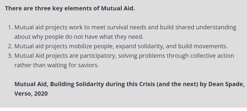 Dean Spade. Mutual Aid: Building Solidarity During This Crisis (and the Next) (Kindle Locations 906-910). Verso, 2020