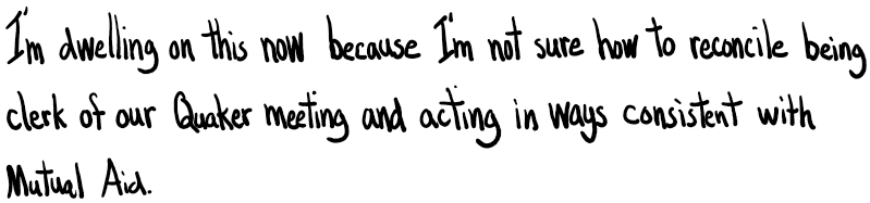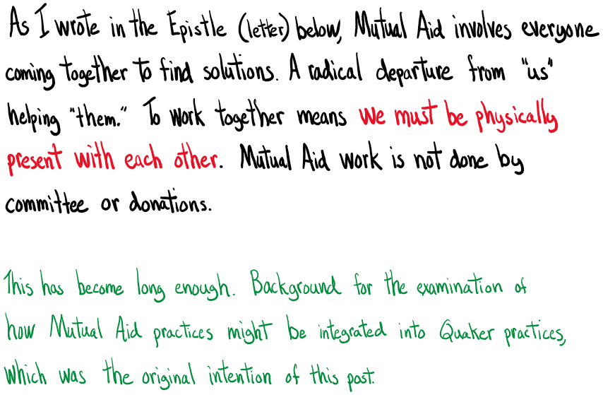 Quakers, Mutual Aid and spirituality is something I’ve prayed and written a lot about. At the end of this is An Epistle to Friends Regarding Community and Mutual Aid I wrote several years ago.