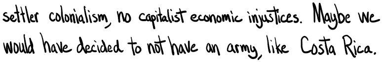 Let our lives speak for our convictions. Let our lives show that we oppose the capitalist system and white supremacy, and the damages that result. We can engage in efforts, such as Mutual Aid and LANDBACK, to build Beloved community. To reach out to our neighbors to join us.