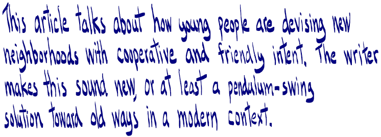 I’ve had discussions with a number of people, in a number of locations, who have expressed an interest in returning to the community they grew up in. Most of these are Quakers, interested in returning to the Quaker communities of their youth. This interest will only grow as the world seems intent on collapsing around us.