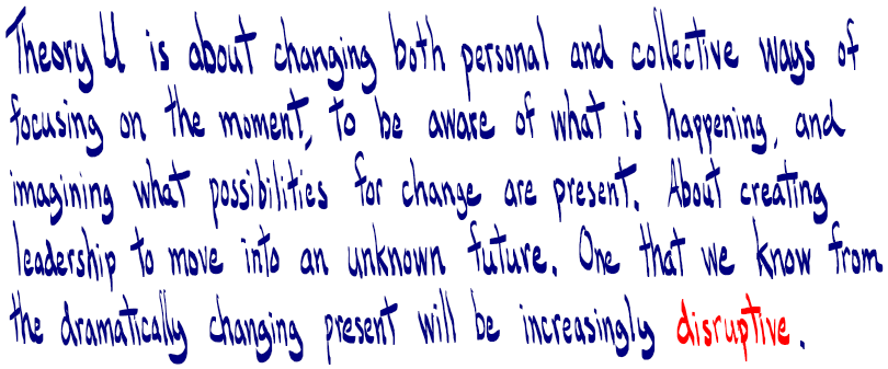Scharmer, Otto. The Essentials of Theory U: Core Principles and Applications (p. 32). Berrett-Koehler Publishers. Kindle Edition.