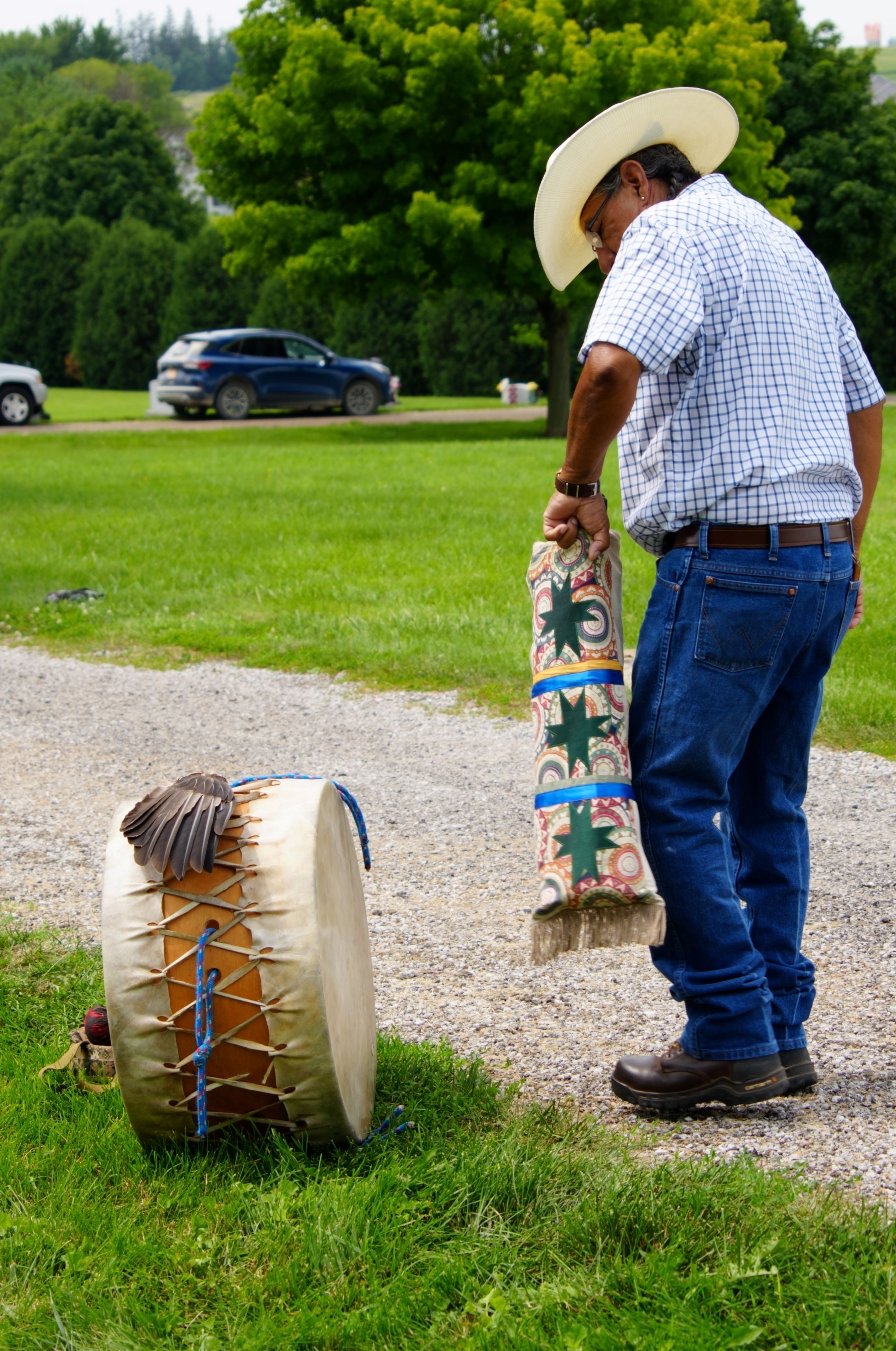 Cedar was burned and feathers used to fan the smoke. Fred sang three songs with the drum he brought. These allowed Grace’s spirit to finally leave, and cross to the other side.