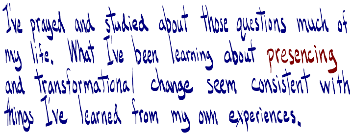 That’s difficult to answer since spiritual matters are usually described as being ‘ineffable’, not able to be expressed in words. Which is why I am excited about the possibilities of this new spiritual grammar related to presencing.