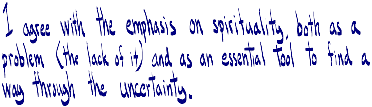 Who is going to lead into the uncertain future? How do we discover what to do, how to adapt?