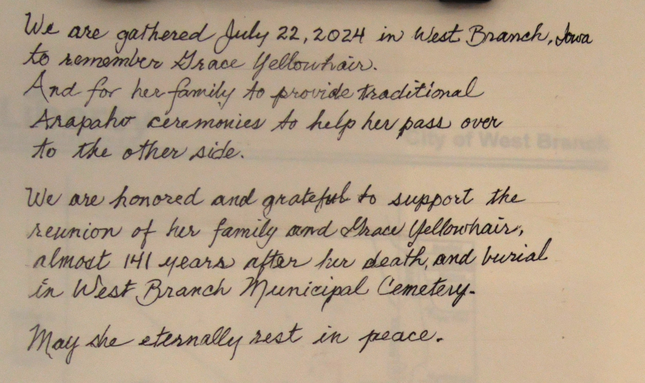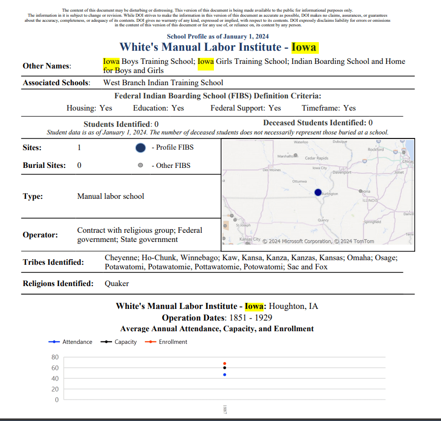 This is a link to the blog post describing the ceremony held in West Branch, Iowa, July 22, 2024, related to the burial of Grace Yellowhair, who died of disease while attending the West Branch Industrial School (West Branch Indian Training School in the table above). The photos below are from that ceremony.