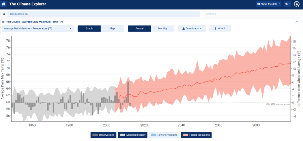 Yesterday I wrote about National Oceanic and Atmospheric Administration’s (NOAA) Climate Explorer. https://crt-climate-explorer.nemac.org/