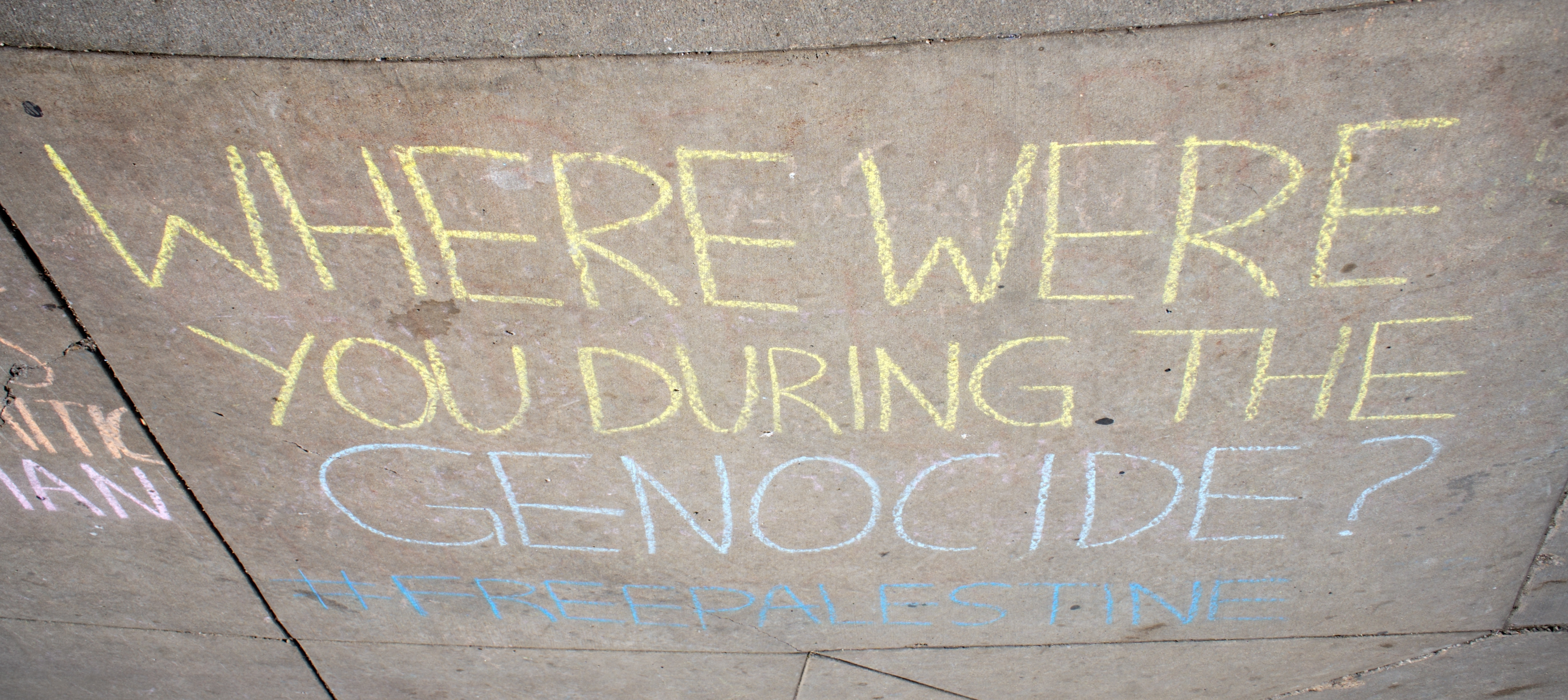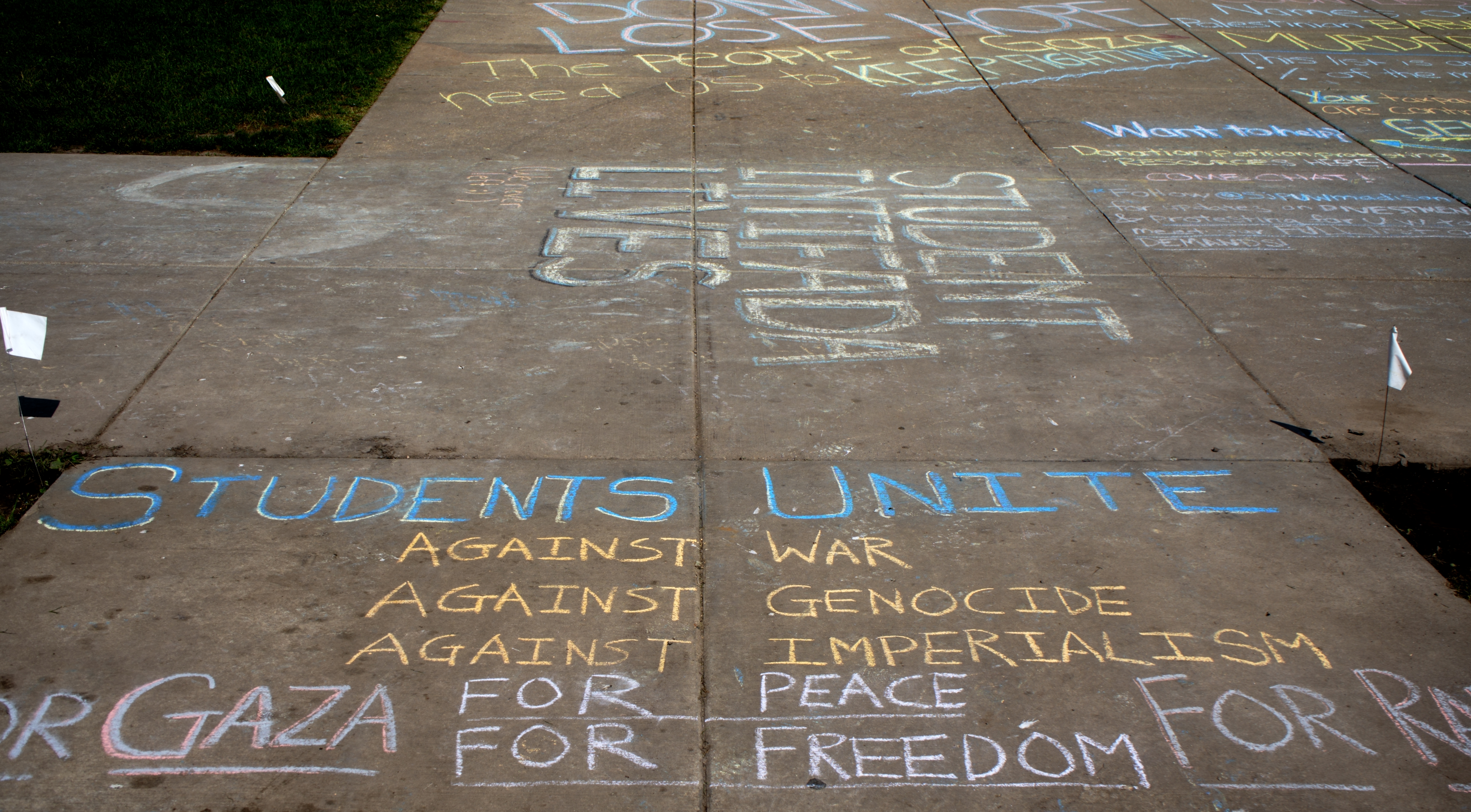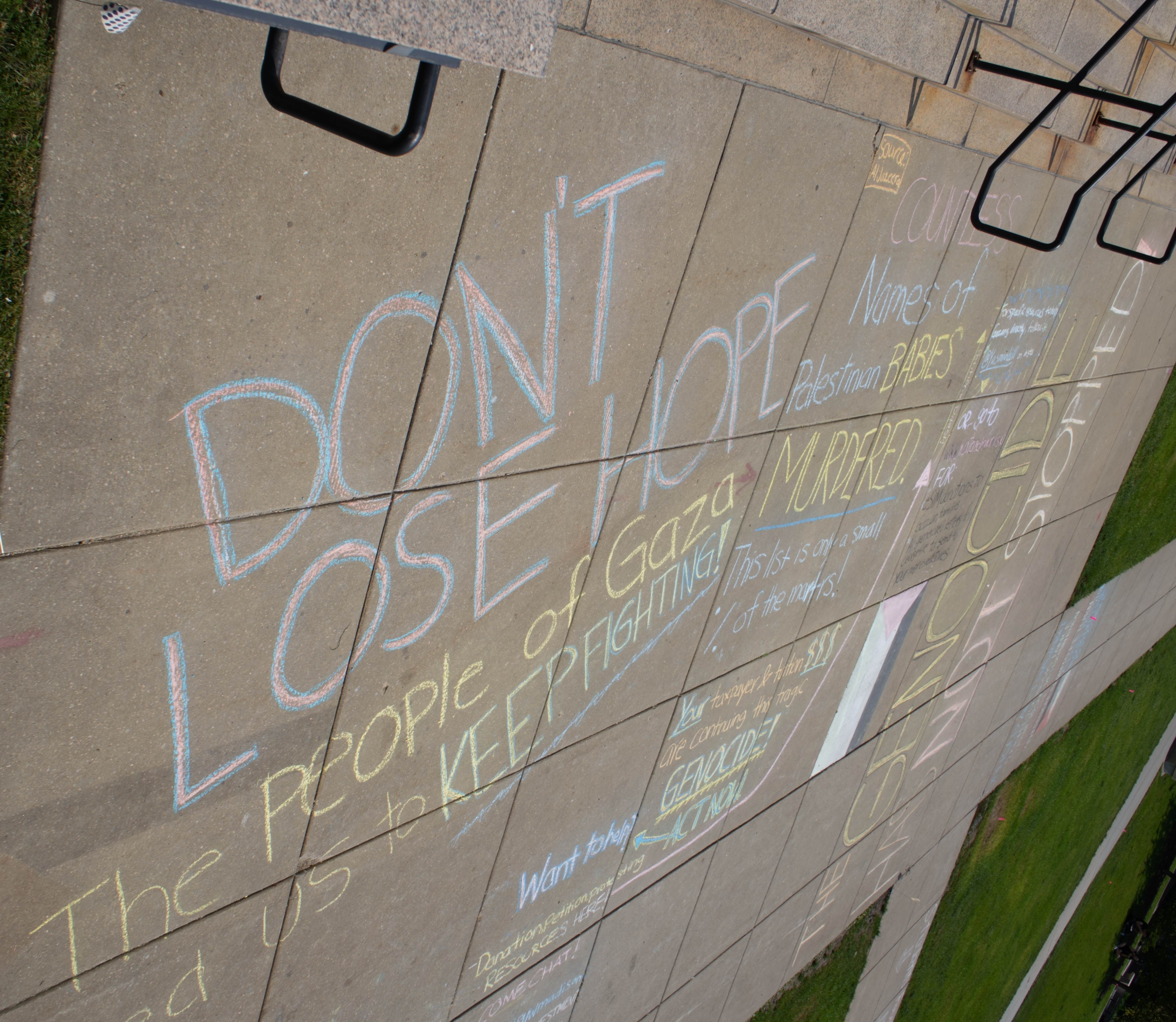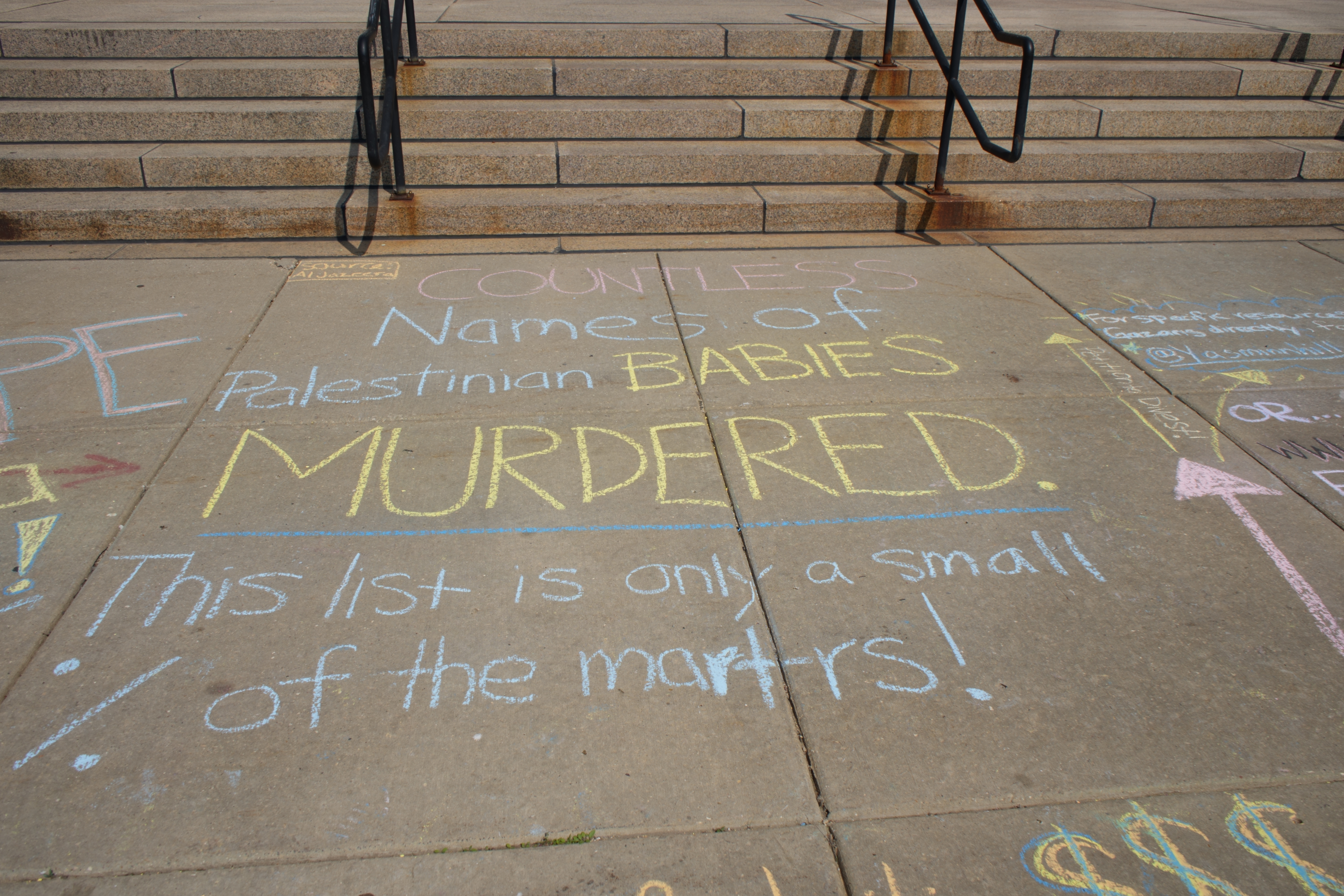 University of Wisconsin-Madison pro-Palestinian students used sidewalk chalking as part of their solidarity camp this past spring. I found them thought provoking. I imagine this will occur again as students return for classes.