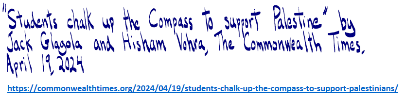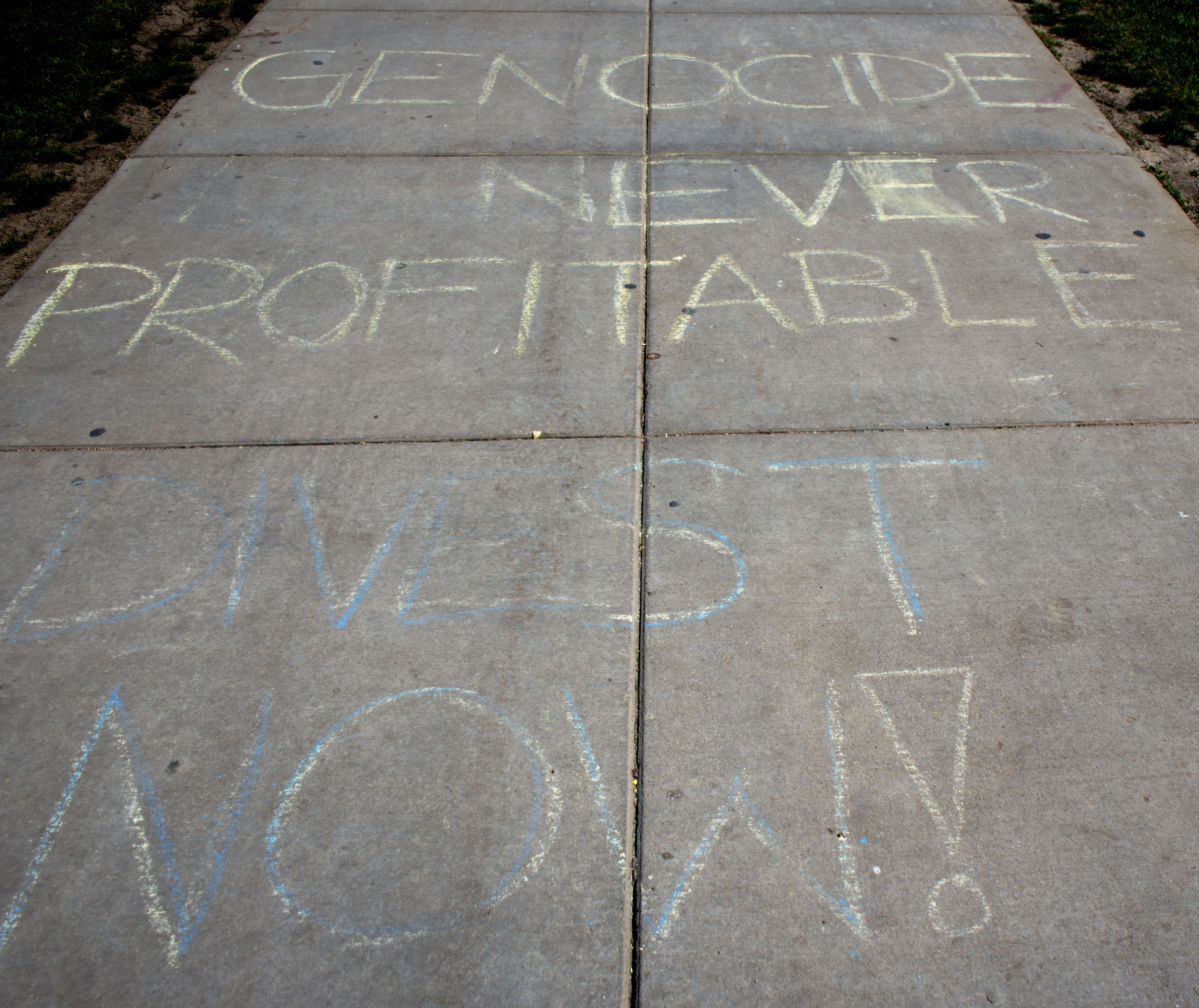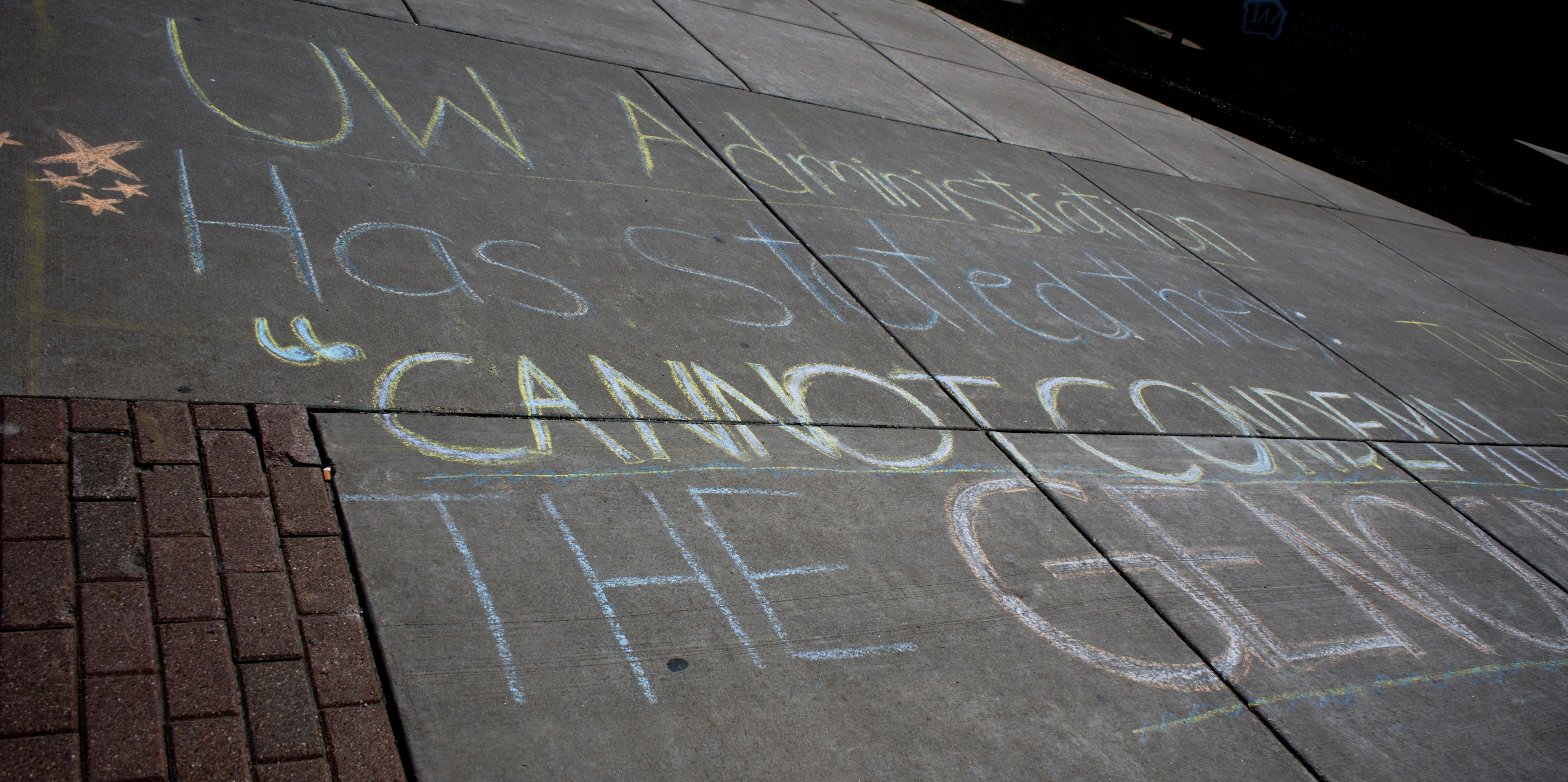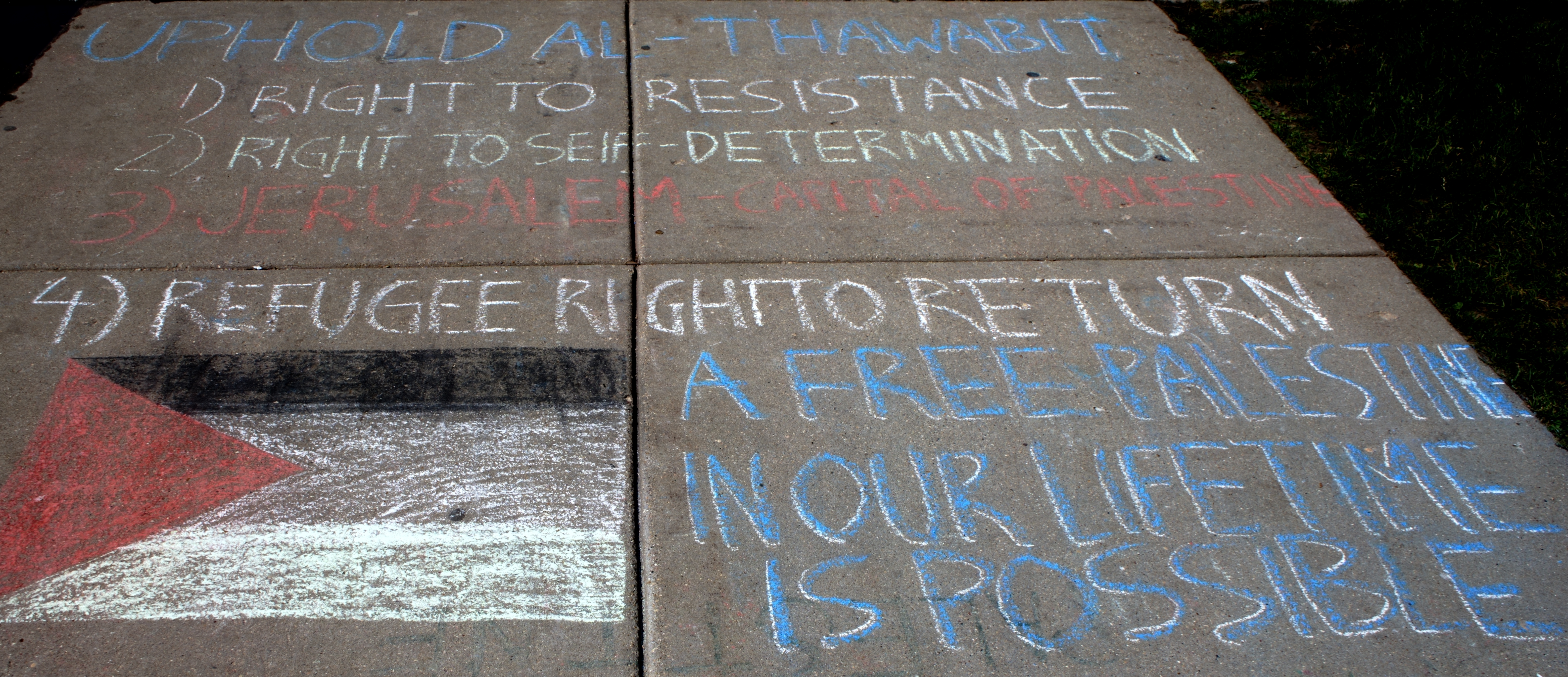 University of Wisconsin-Madison pro-Palestinian students used sidewalk chalking as part of their solidarity camp this past spring. I found them thought provoking. I imagine this will occur again as students return for classes.