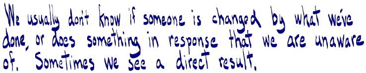 I often wonder how effective some of our efforts for peace and justice are. Which is a scary thing to consider when you’ve invested so much in various causes and actions. What if what we do doesn’t make any difference?