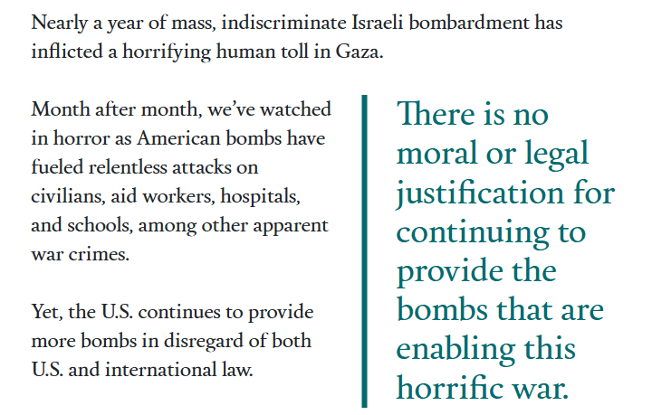 FCNL Joins Coalition Demanding Immediate Halt to U.S. Weapons Fueling Gaza War by Bryan Bowman, FCNL, September 5, 2024