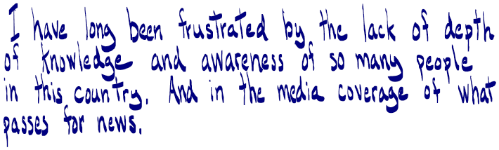 The problem with information these days is not only its content, but equally its form. The velocity of information is striking, making it near impossible for a concerned person to discern both what is significant and what is true. Providing an excess of information that comes without proper, democratic analysis and is almost entirely controlled by a small oligarchy is its own form of censorship, exhausting the reader and viewer into submission. What is censored is not only information itself, although that does occur more than we admit, but also knowledge and wisdom. The news remains at the level of it happened, without explaining most of what happened at all: it does not explain why it happened, what caused it to happen, or its possible consequences. This form of reporting lies by omission, as events are neither static nor singular but part of a complex process.
