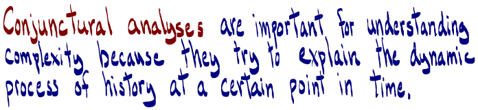 That is why conjunctural analyses, derived from a history of Marxist analysis and from the work of the political and social movements that conduct them, are rooted in four principles: