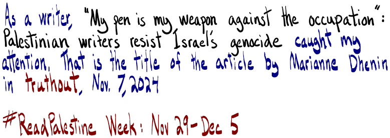 “My Pen Is My Weapon Against the Occupation”: Palestinian writers resist Israel’s genocide by Marianne Dhenin, truthout, Nov 7, 2024
