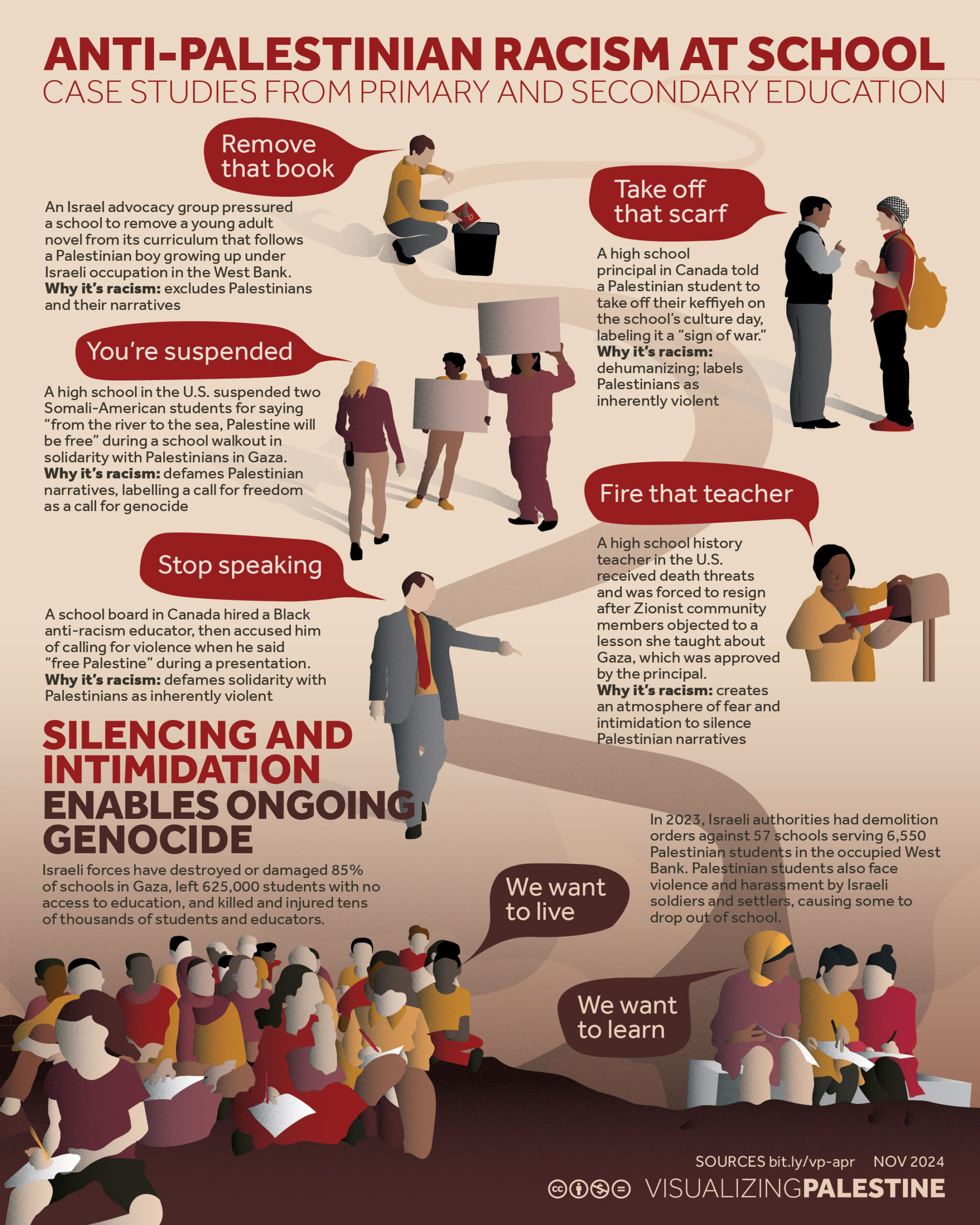 - Are complicit in violating Palestinian rights, including through discriminatory policies and practices or by whitewashing and justifying Israel’s occupation, apartheid or genocide, or