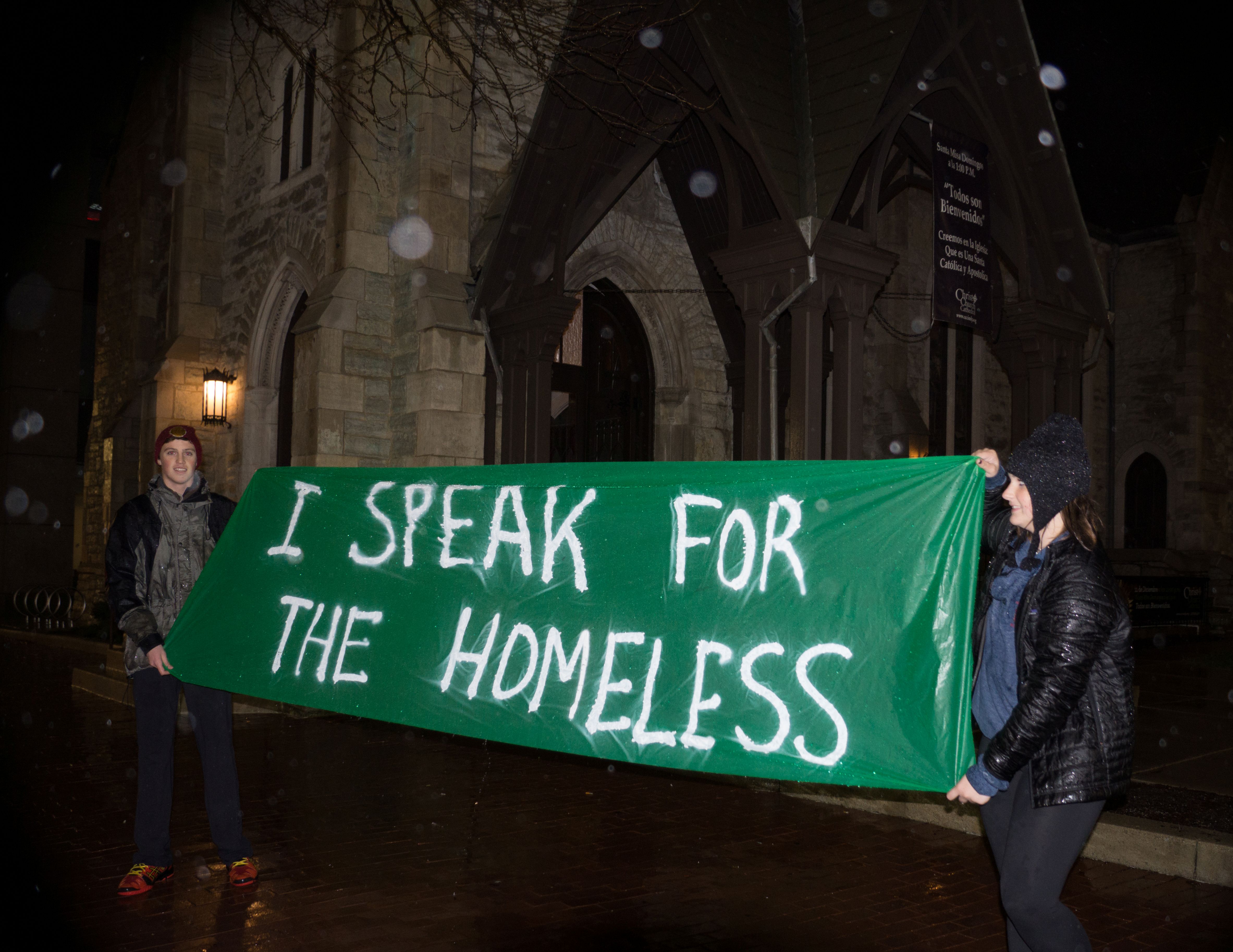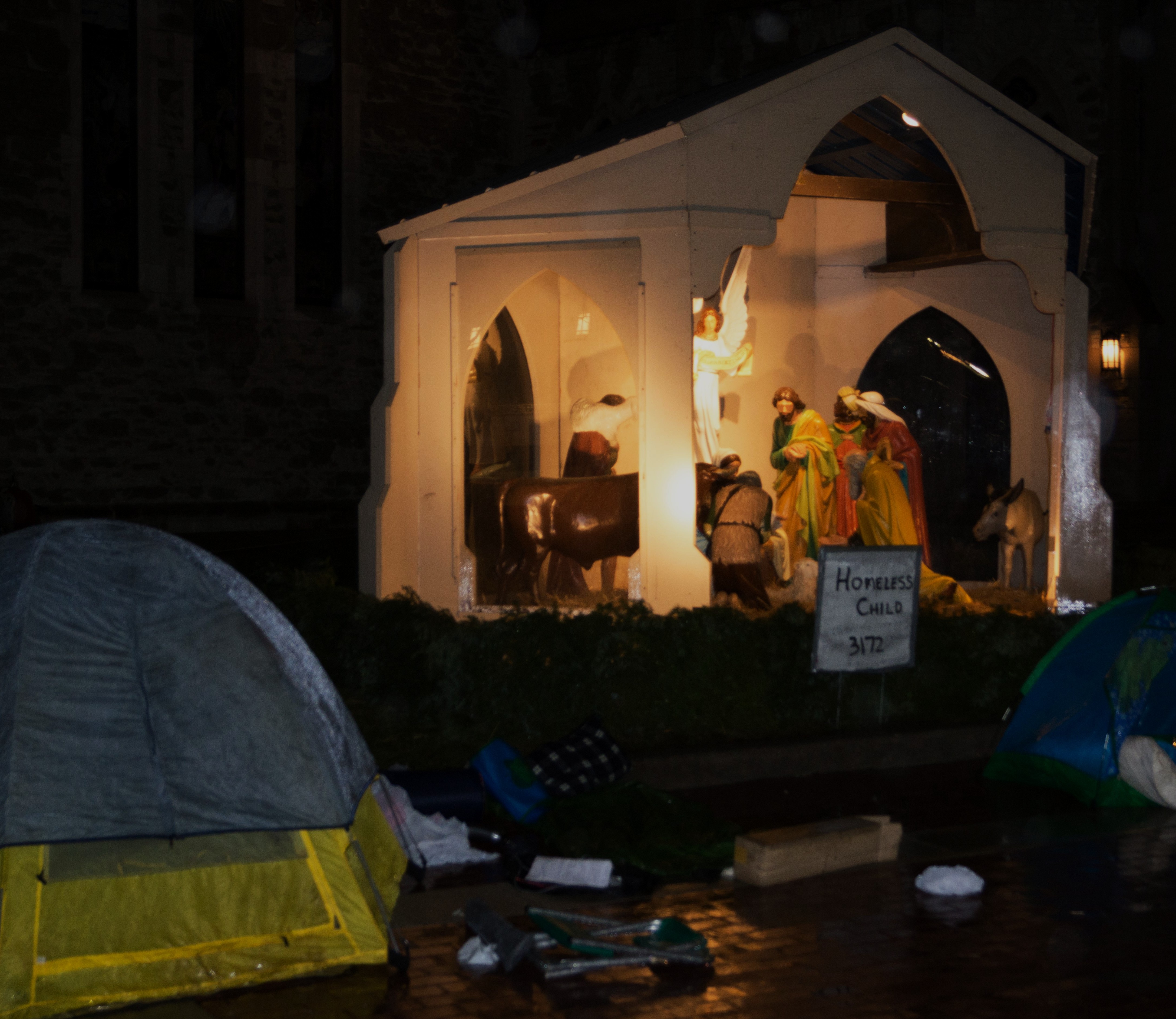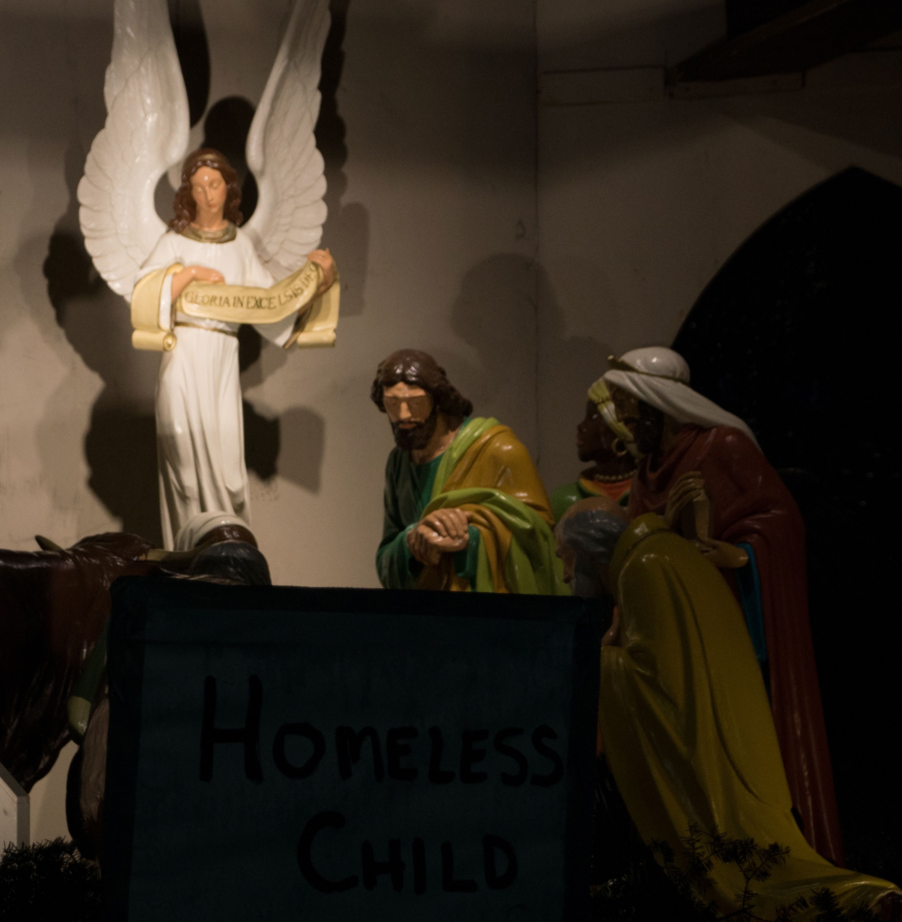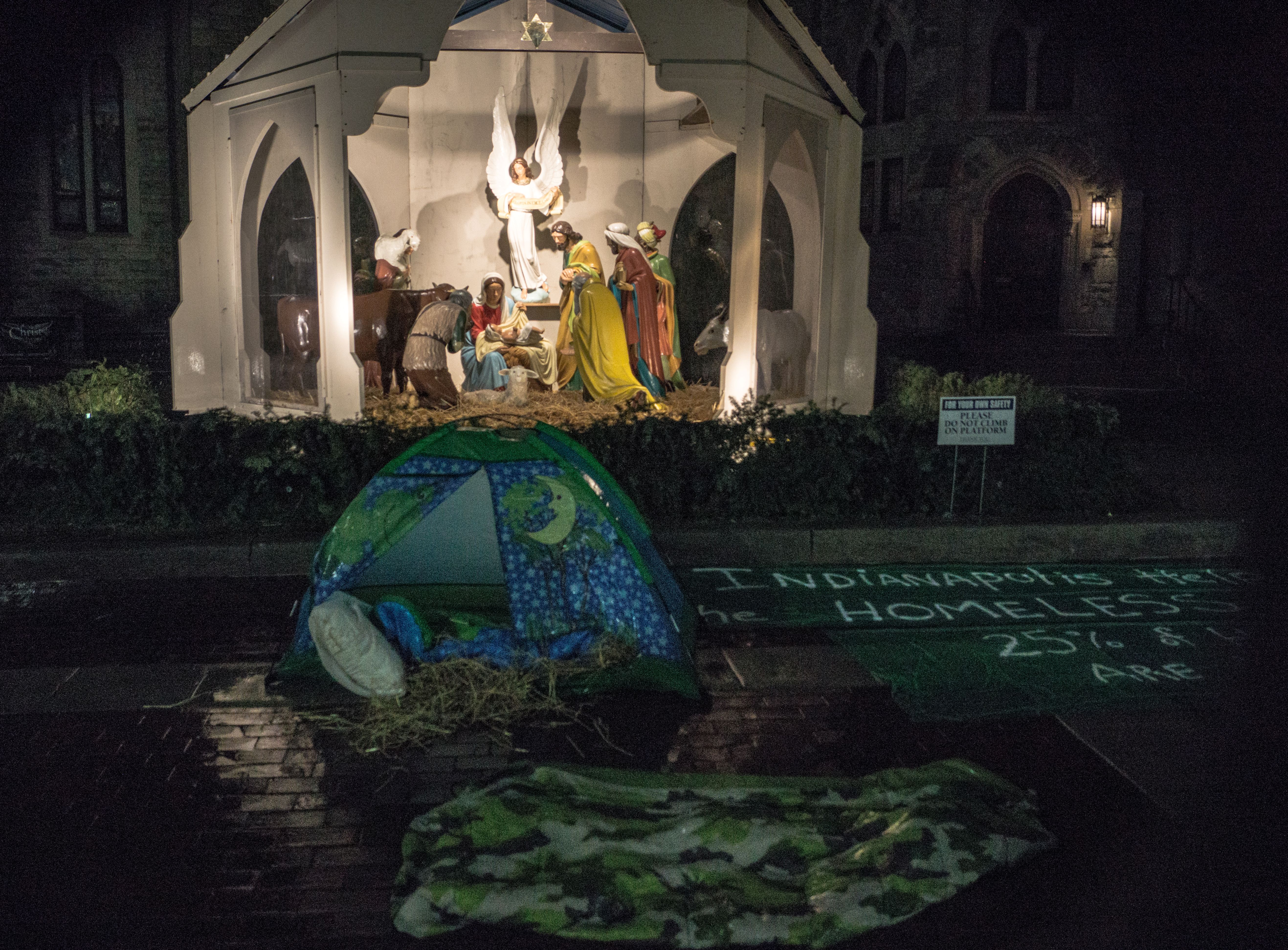When I think of the Nativity scene, I remember the night, 12/5/2014, when Jim Poyser, an activist friend who knew of my photography, asked me to take photos of a group of Brebeuf Jesuit high school students in Indianapolis who were going to camp on the Circle downtown, to bring awareness to homelessness in the city.