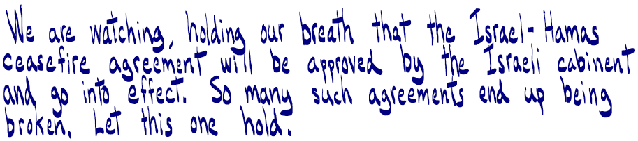 There must be a commitment from the U.S. and others towards ensuring that this is not simply a pause but a permanent cease-fire. That means holding all parties accountable for violations. In Lebanon, Israel has violated the cease-fire terms approximately a hundred times without consequence; this is unacceptable and should not be allowed in Lebanon or in Gaza. Continued pressure is needed to ensure the terms of the deal are followed and push for a long-term political solution that brings an end to forced displacement, occupation, and apartheid in Palestine. We call for: