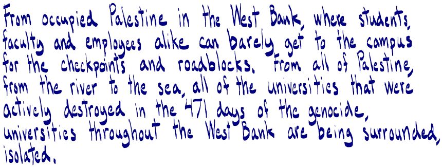 Following is a message from Birzeit University to the students at the pro-Palestinian solidarity encampment at Bowdoin College in Maine.