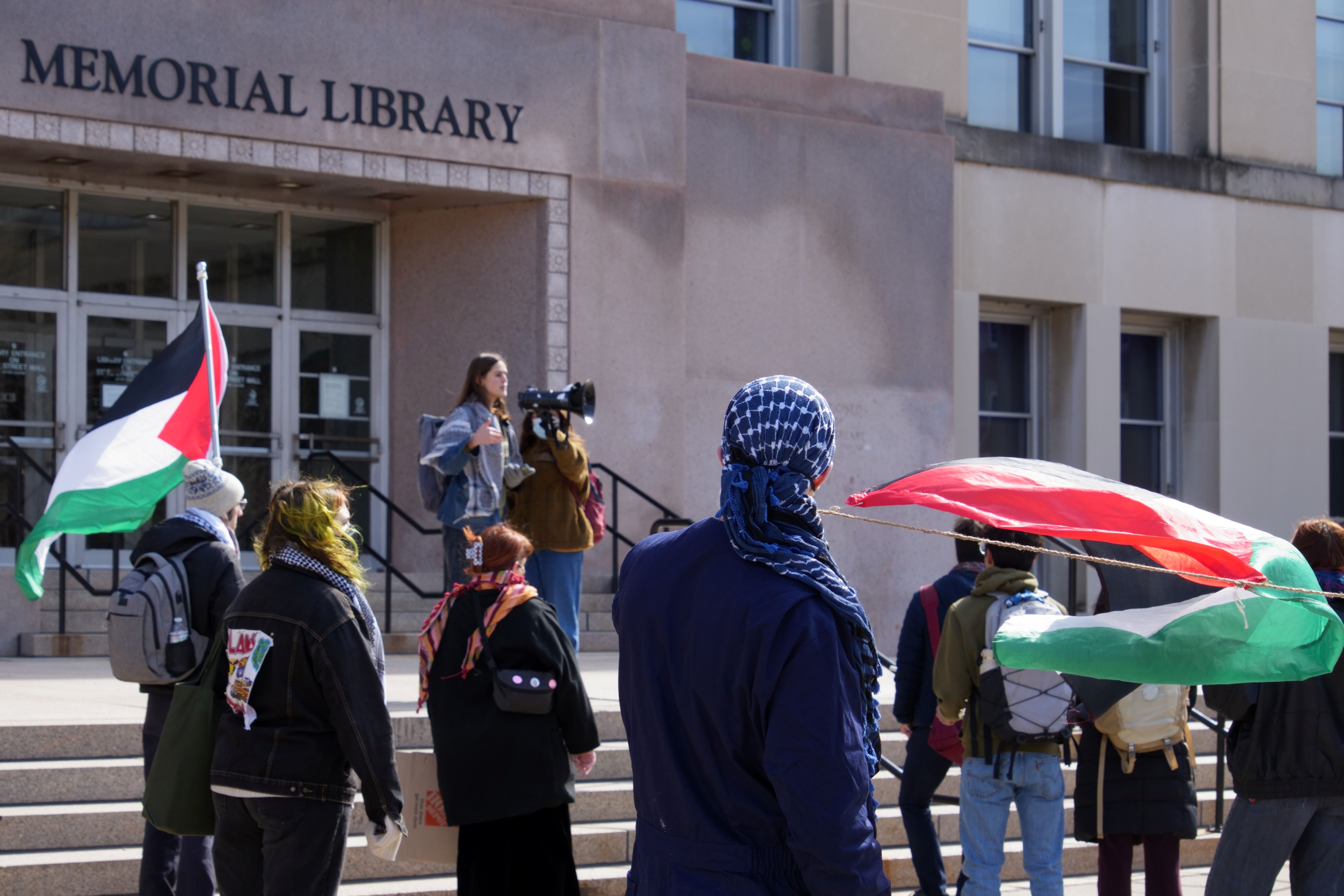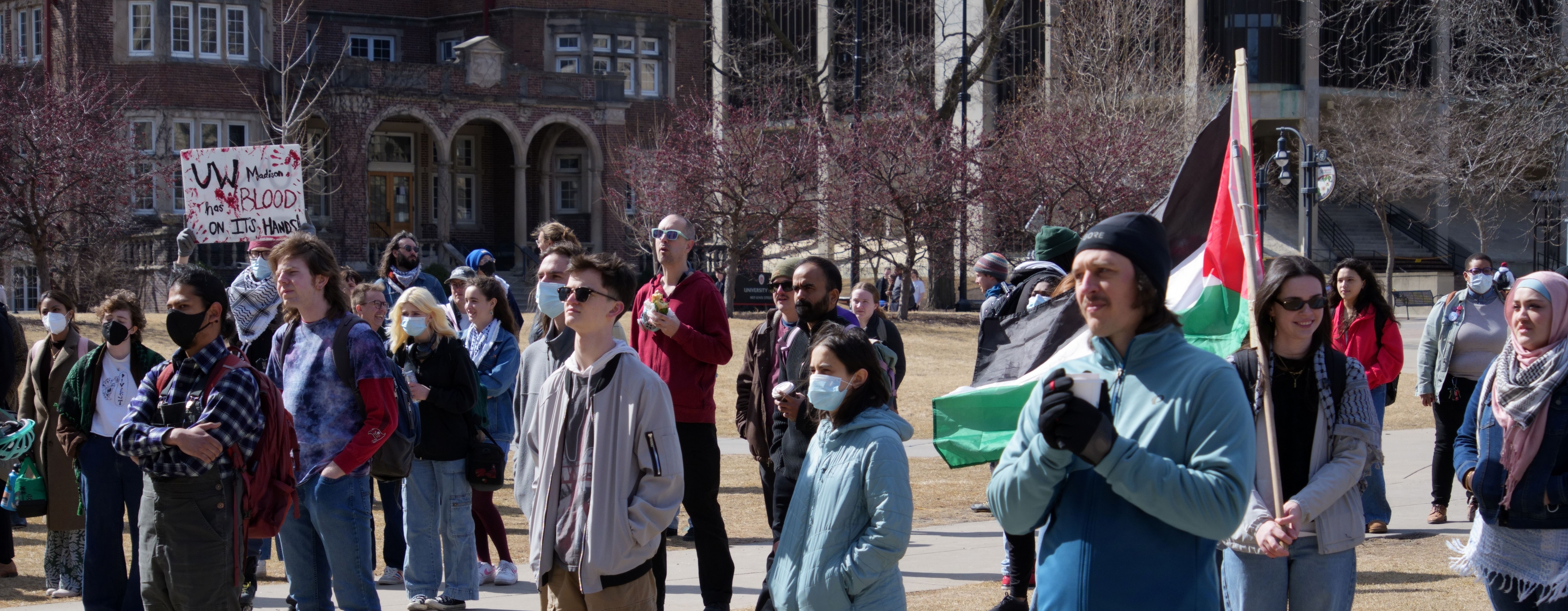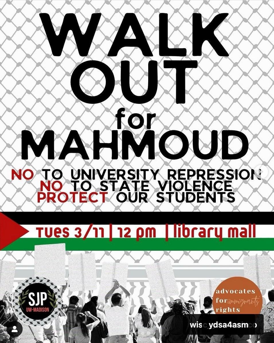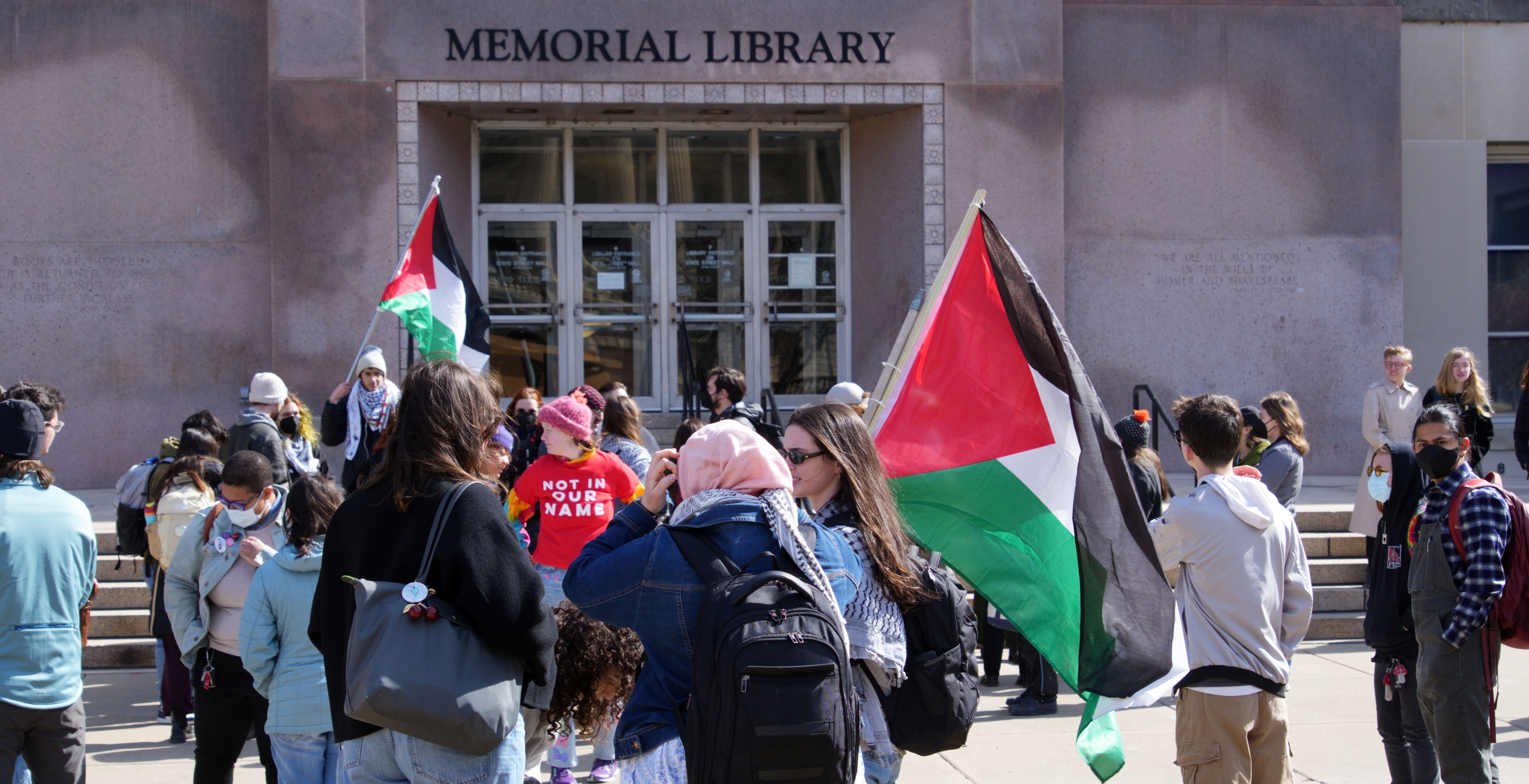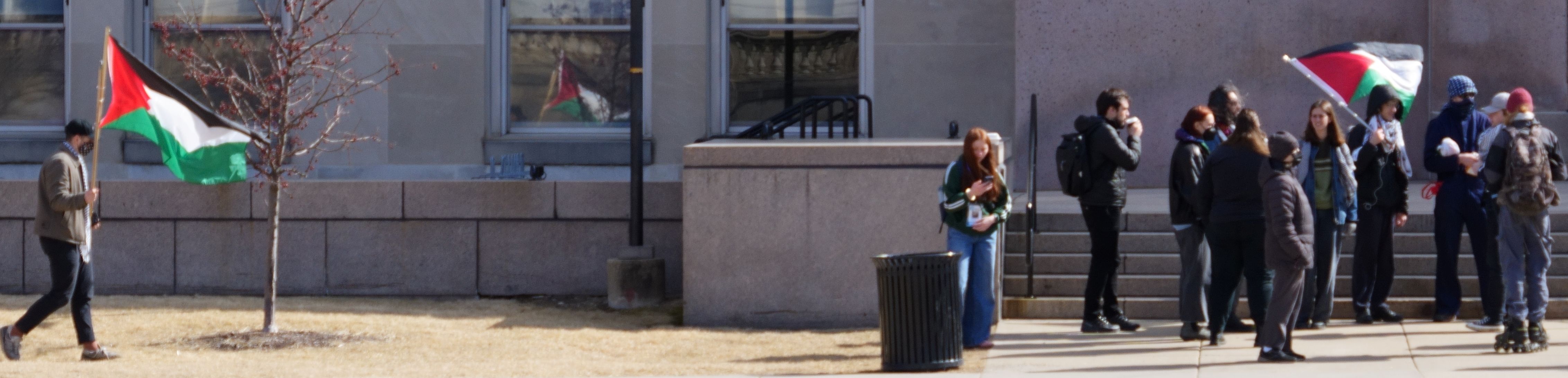 The following photos were taken at “Walk Out for Mahmoud” yesterday on the University of Wisconsin, Madison campus. Another rally is being organized by the Wisconsin Coalition for Justice in Palestine (WCJP), that I am a member of, in Milwaukee on Friday. I arrived at yesterday’s rally early and introduced myself to the small group of organizers getting ready. They were happy to hear of the support from the coalition.