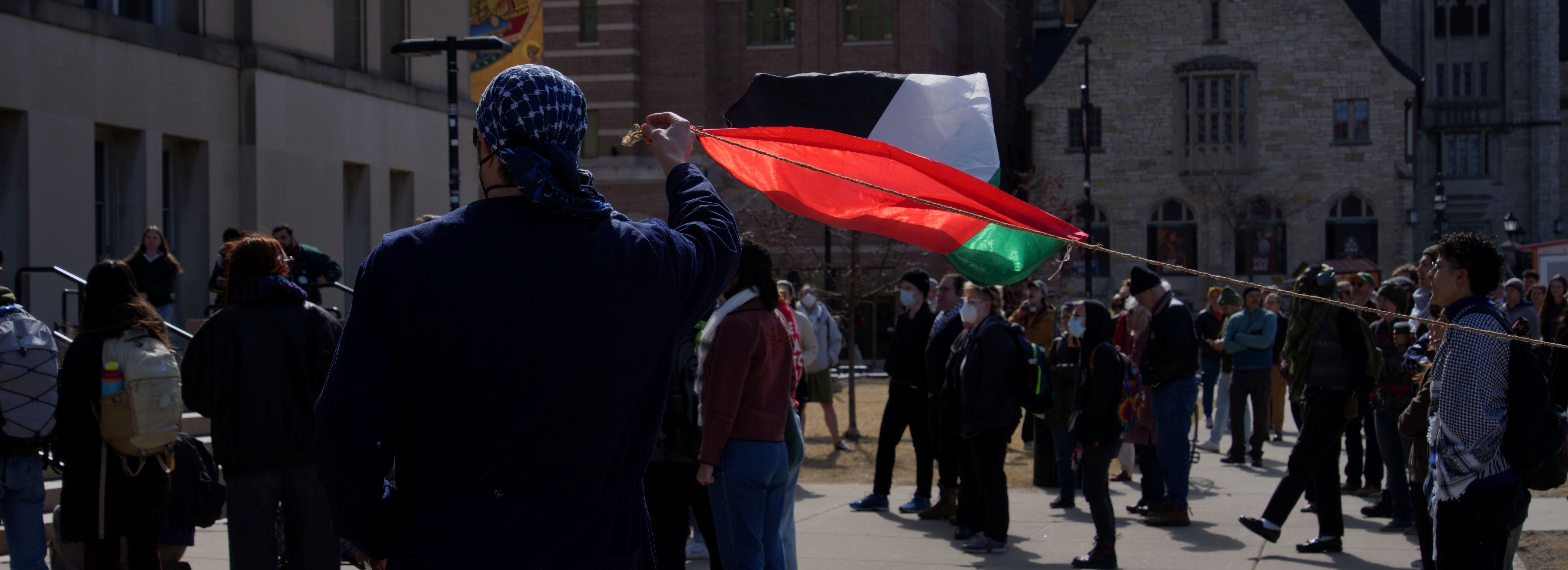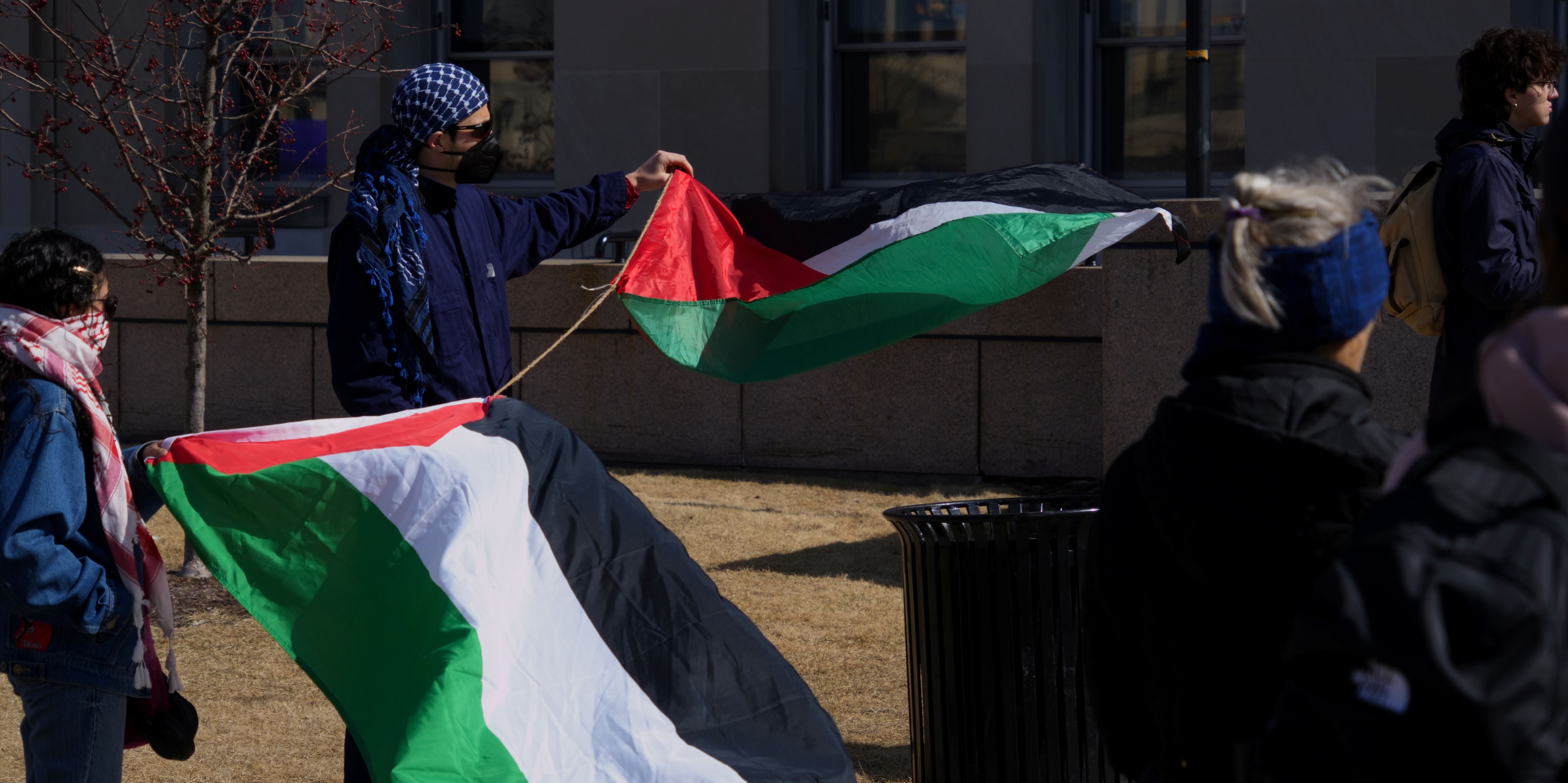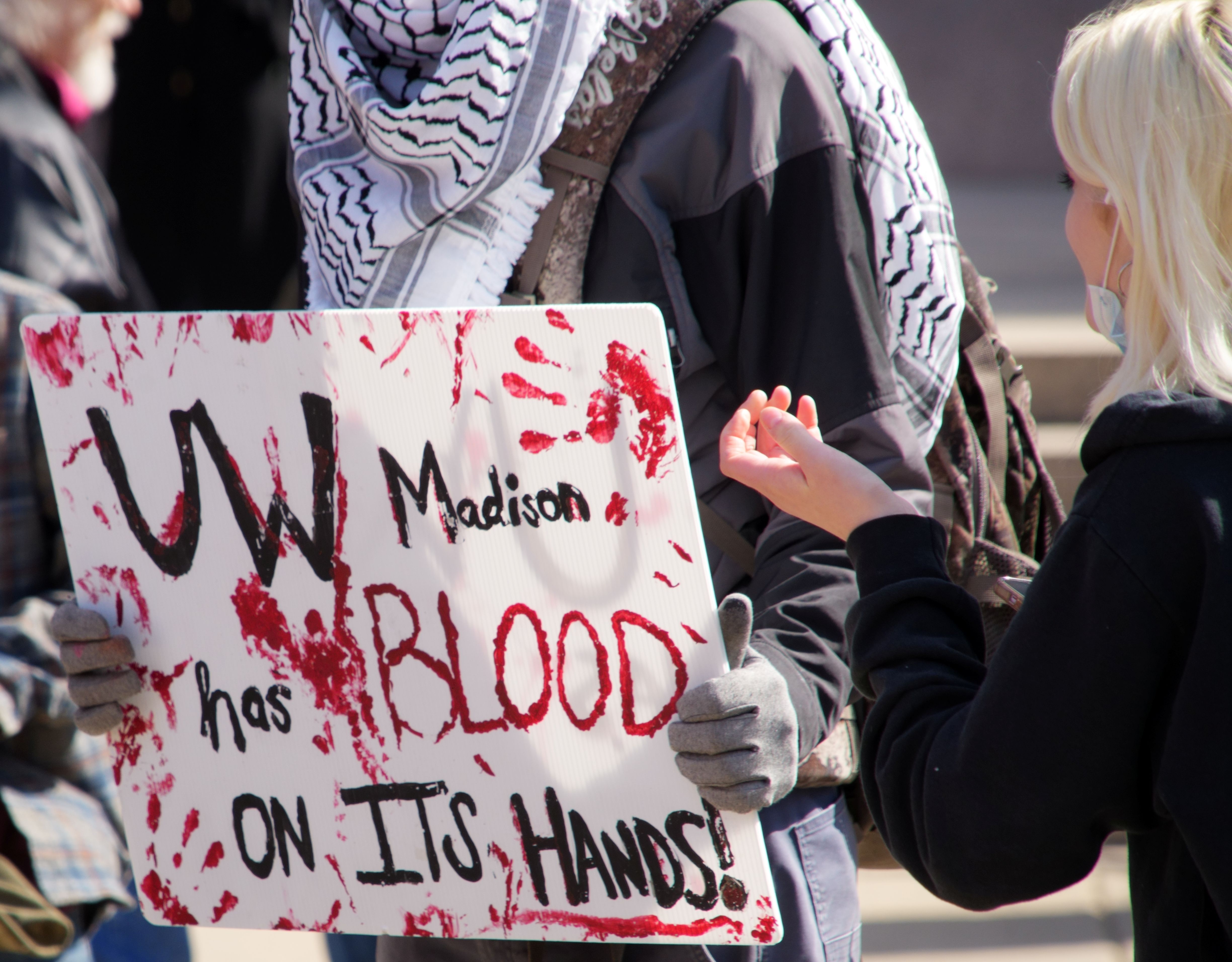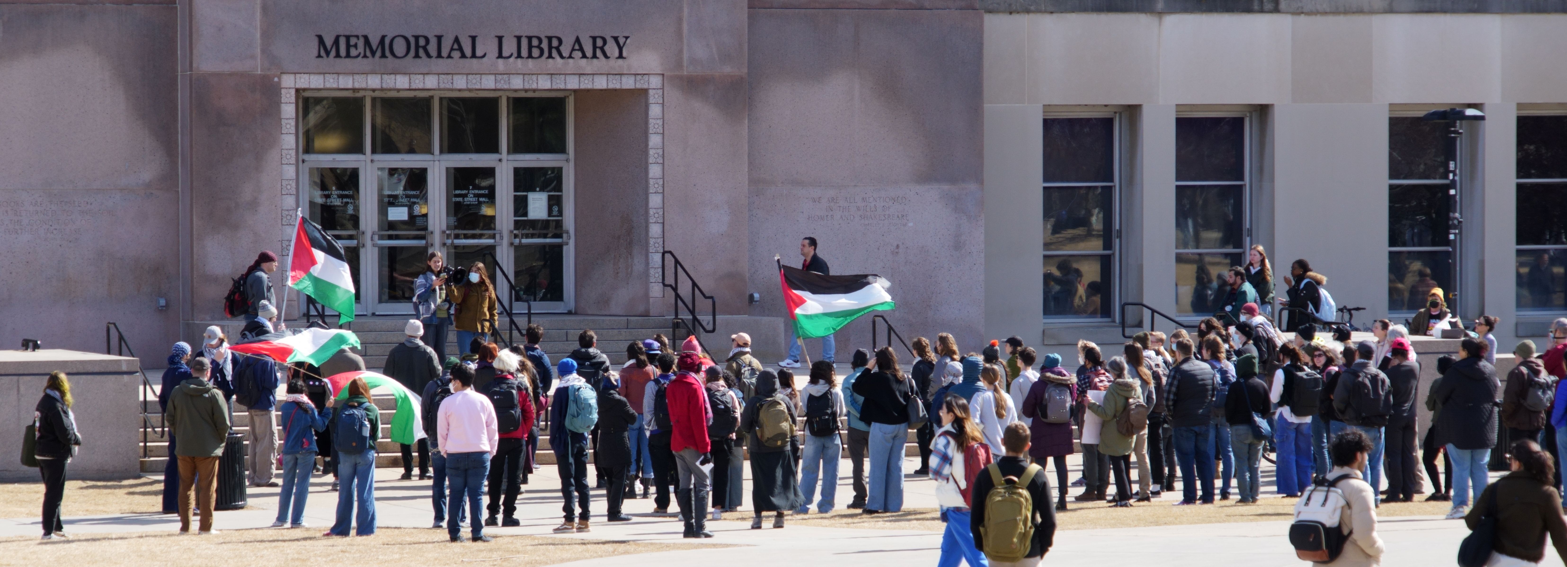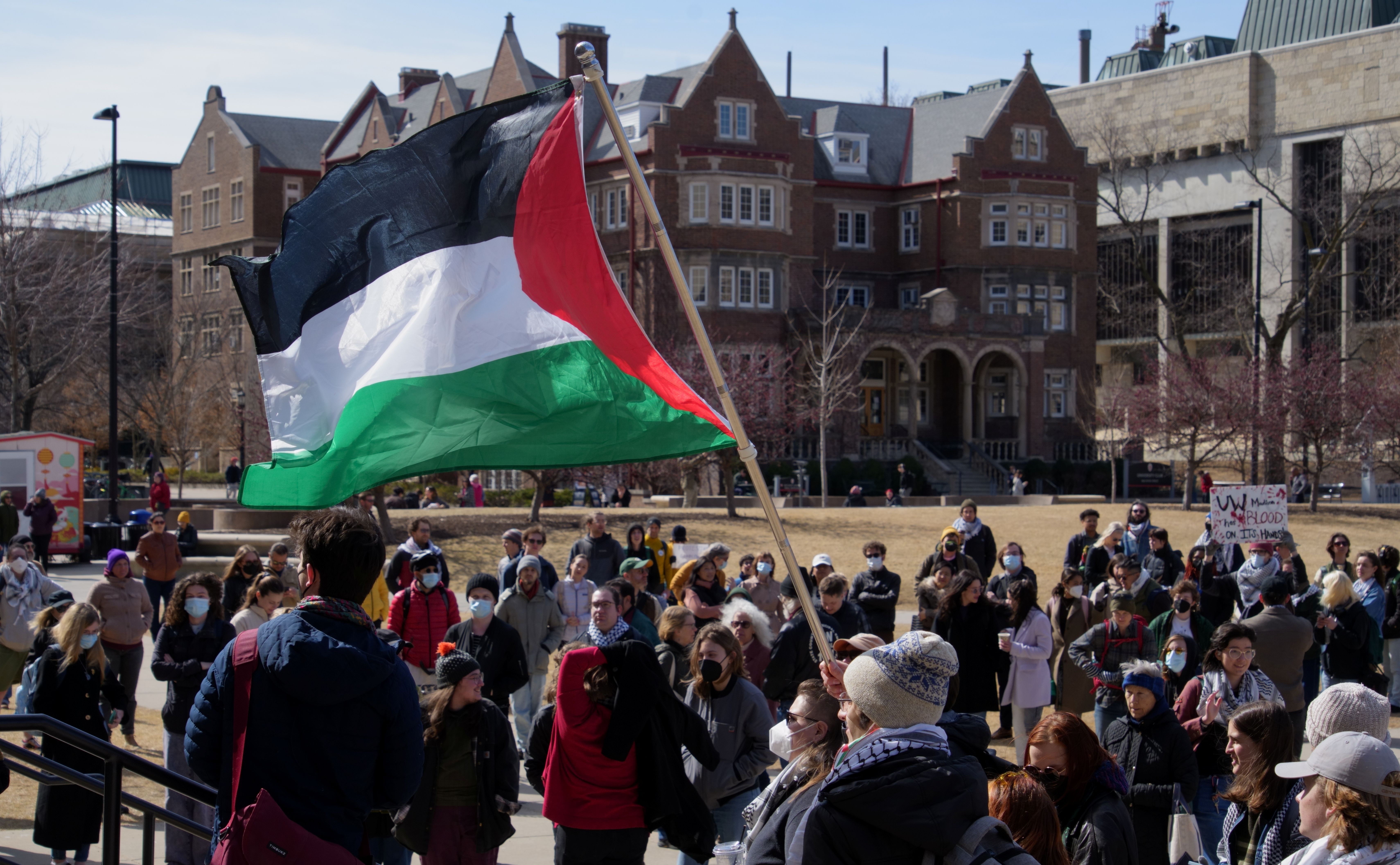 The following photos were taken at “Walk Out for Mahmoud” yesterday on the University of Wisconsin, Madison campus. Another rally is being organized by the Wisconsin Coalition for Justice in Palestine (WCJP), that I am a member of, in Milwaukee on Friday. I arrived at yesterday’s rally early and introduced myself to the small group of organizers getting ready. They were happy to hear of the support from the coalition.