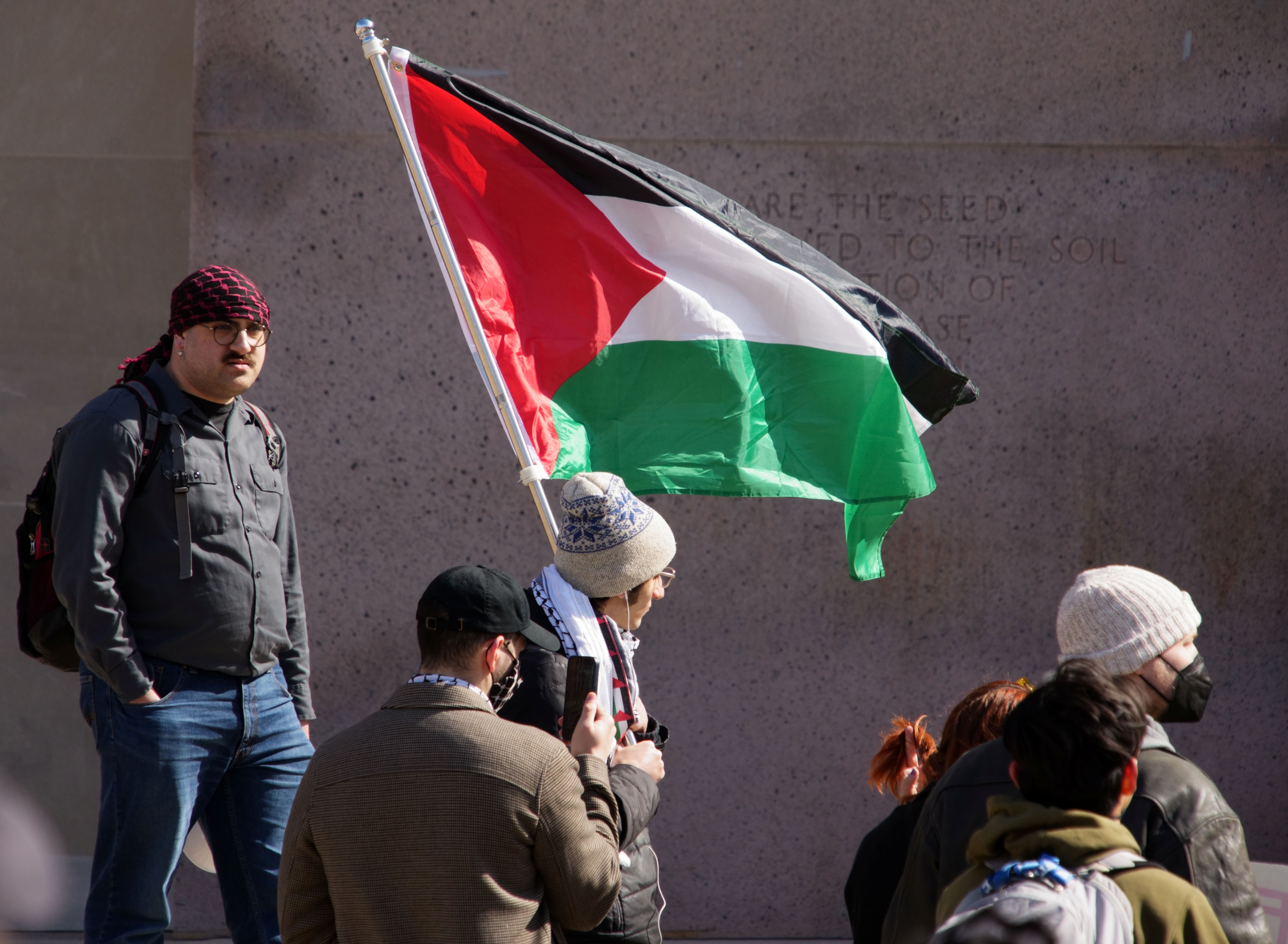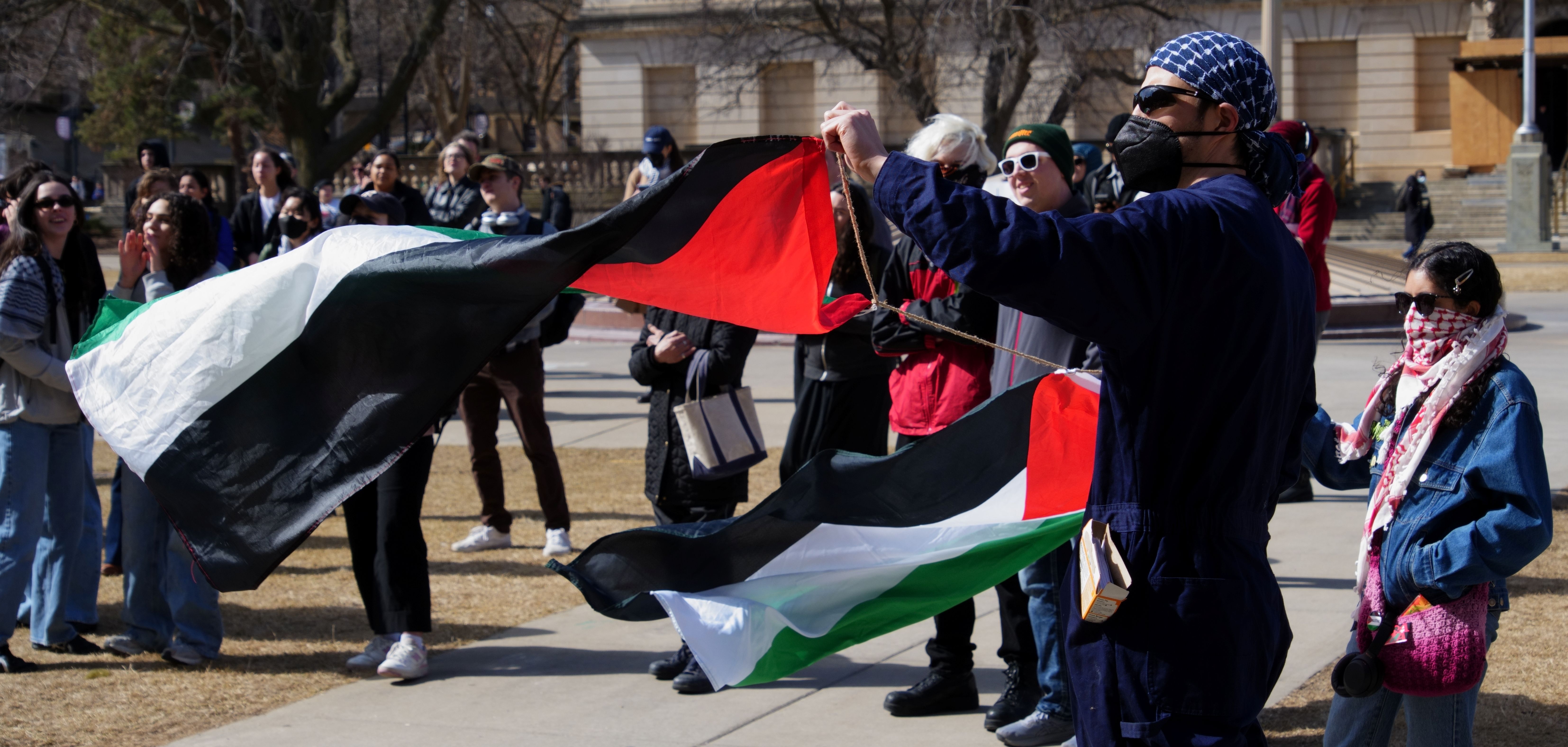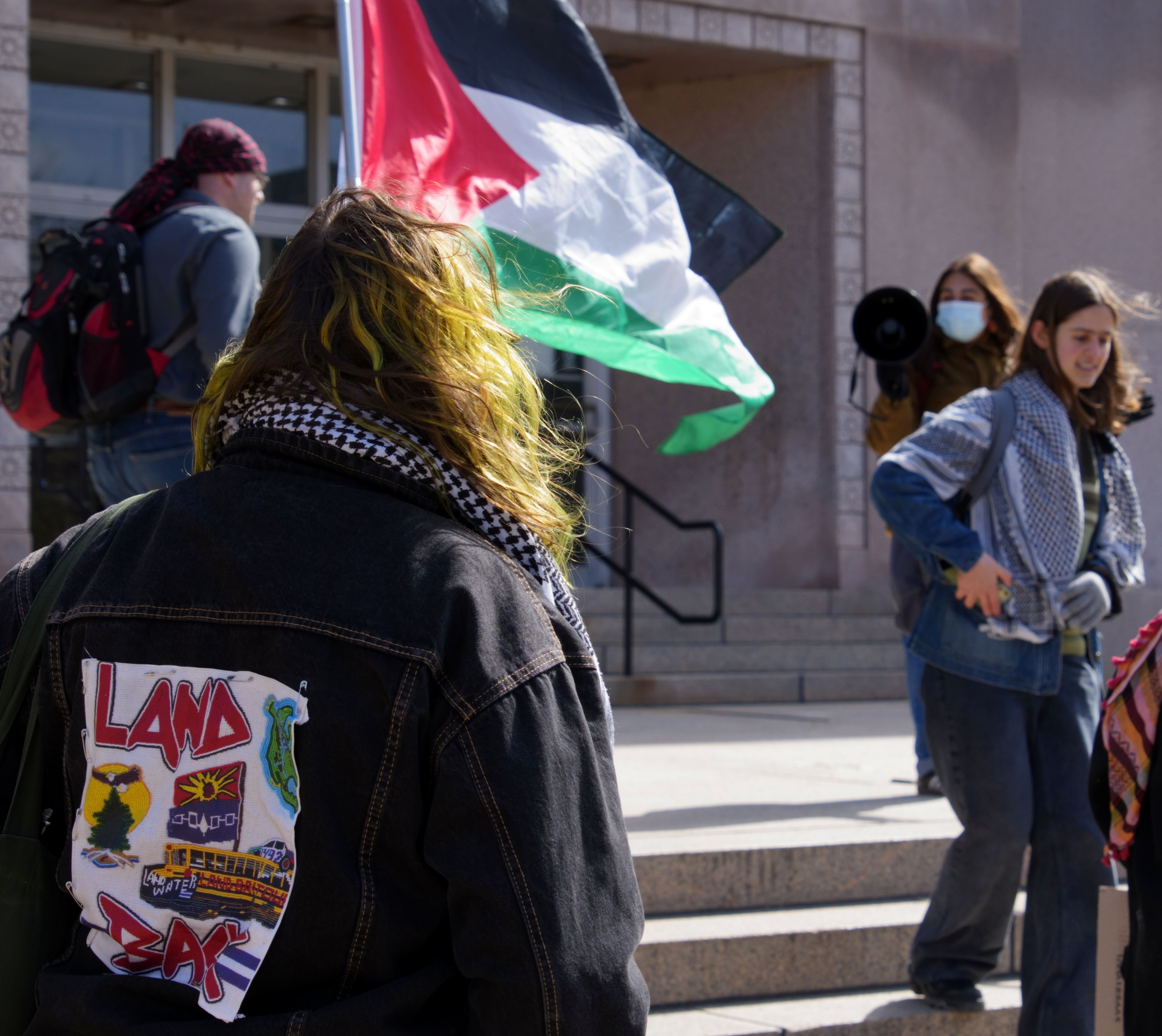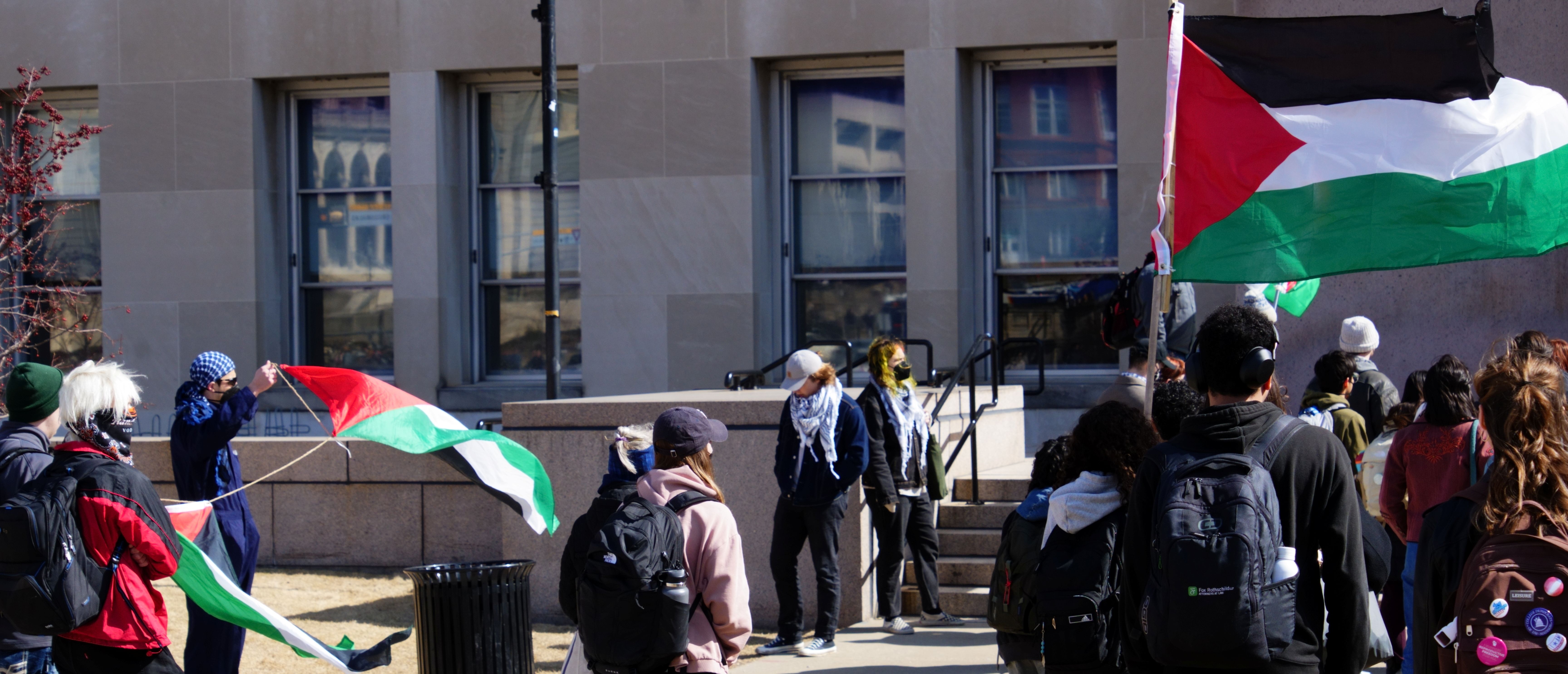 The following photos were taken at “Walk Out for Mahmoud” yesterday on the University of Wisconsin, Madison campus. Another rally is being organized by the Wisconsin Coalition for Justice in Palestine (WCJP), that I am a member of, in Milwaukee on Friday. I arrived at yesterday’s rally early and introduced myself to the small group of organizers getting ready. They were happy to hear of the support from the coalition.