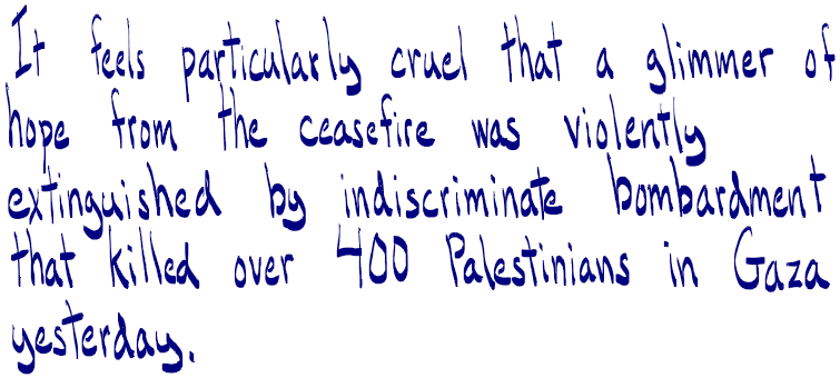 Despite the temporary nature of the recent ceasefire and the grim conditions of destruction, blockade and famine, this year I had a glimmer of hope. Now, with the brutal return of genocide, my feelings of despair have deepened.
