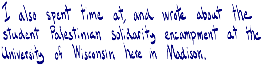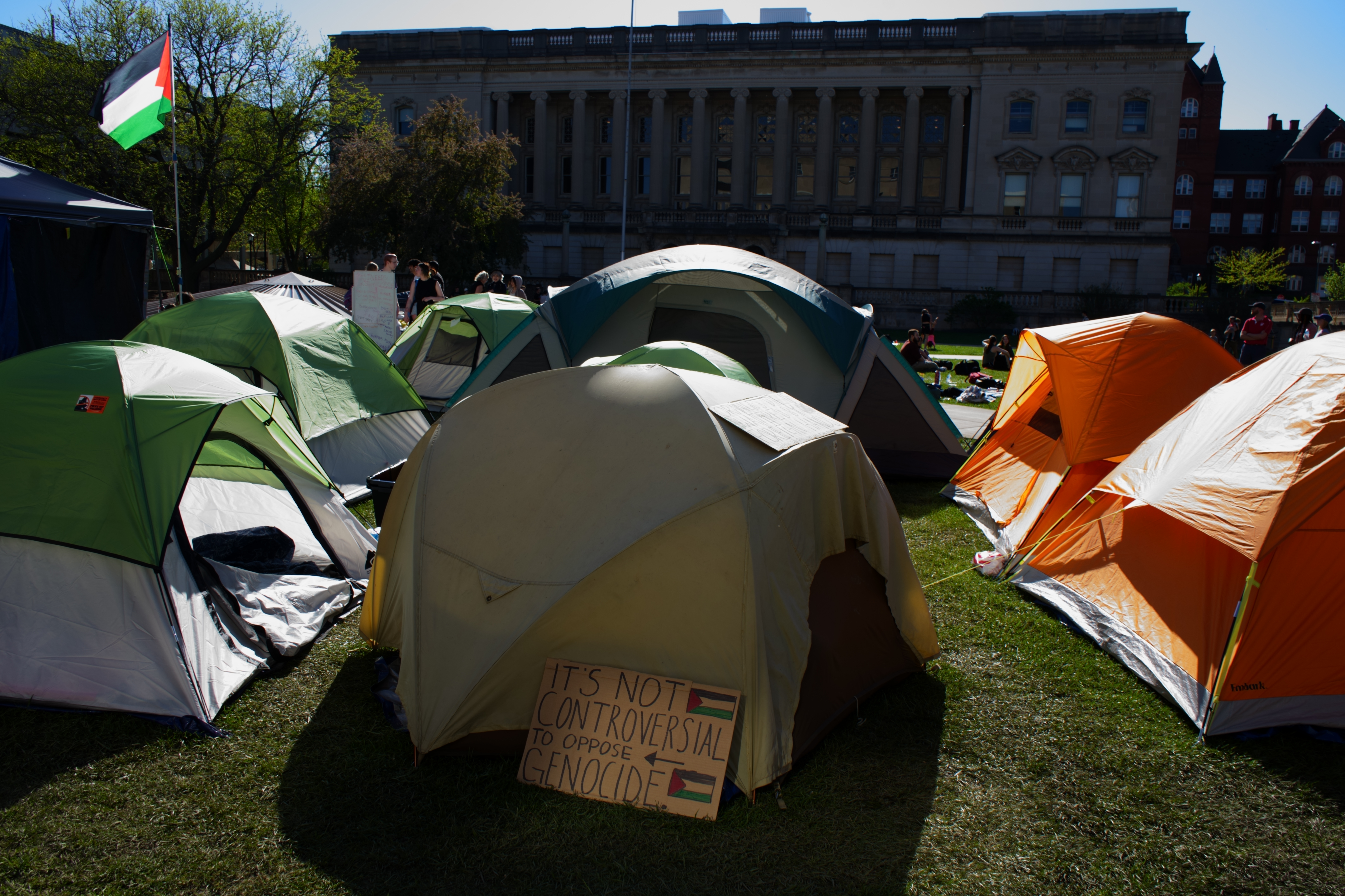 Student Palestinian solidarity tent encampment, U of Wisconsin, Madison, 2024 Photo credit: Jeff Kisling