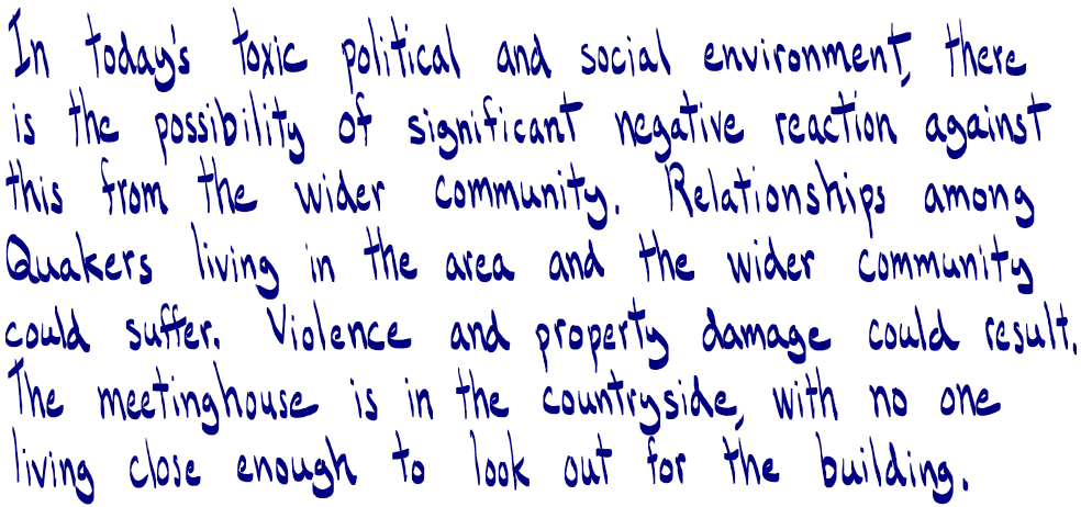 Setting up a tent at a Quaker meetinghouse also conveys a message of community and collaboration. It reflects the Quaker value of community and the belief that collective action can bring about positive change. This action can serve as an invitation for others to join in solidarity and cooperation, promoting a sense of unity and shared purpose in the pursuit of justice and peace.