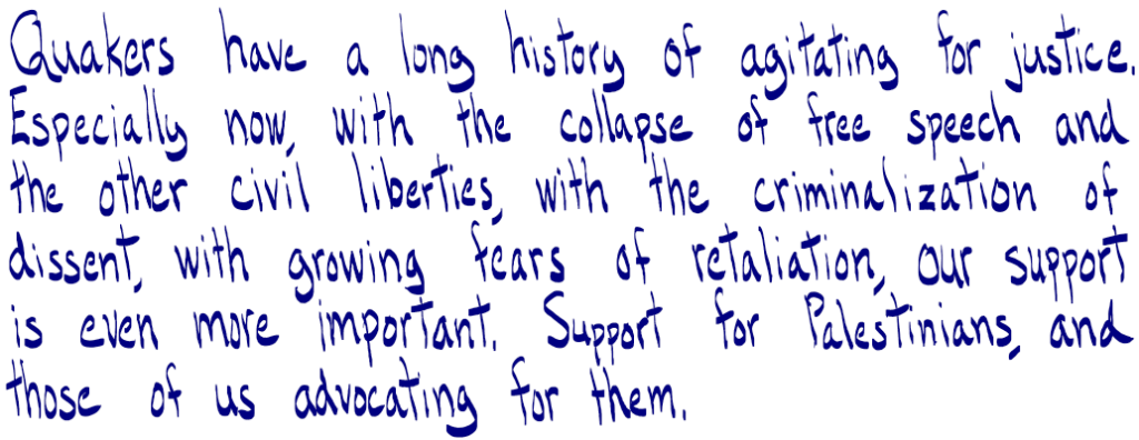 “The legal risks are real,” write attorneys Thomas Anthony Durkin and Bernard E Harcourt in The Guardian. “They are perilous, and they are alarming. Where a designated Foreign Terrorist Organization (FTO) – such as Hamas, the Popular Front for the Liberation of Palestine, or related organizations such as the Samidoun Palestinian Prisoner Solidarity Network – is concerned, the line separating political advocacy from material support to terrorism can be razor thin, and any doubt tends to be resolved against those engaged in the political advocacy.”