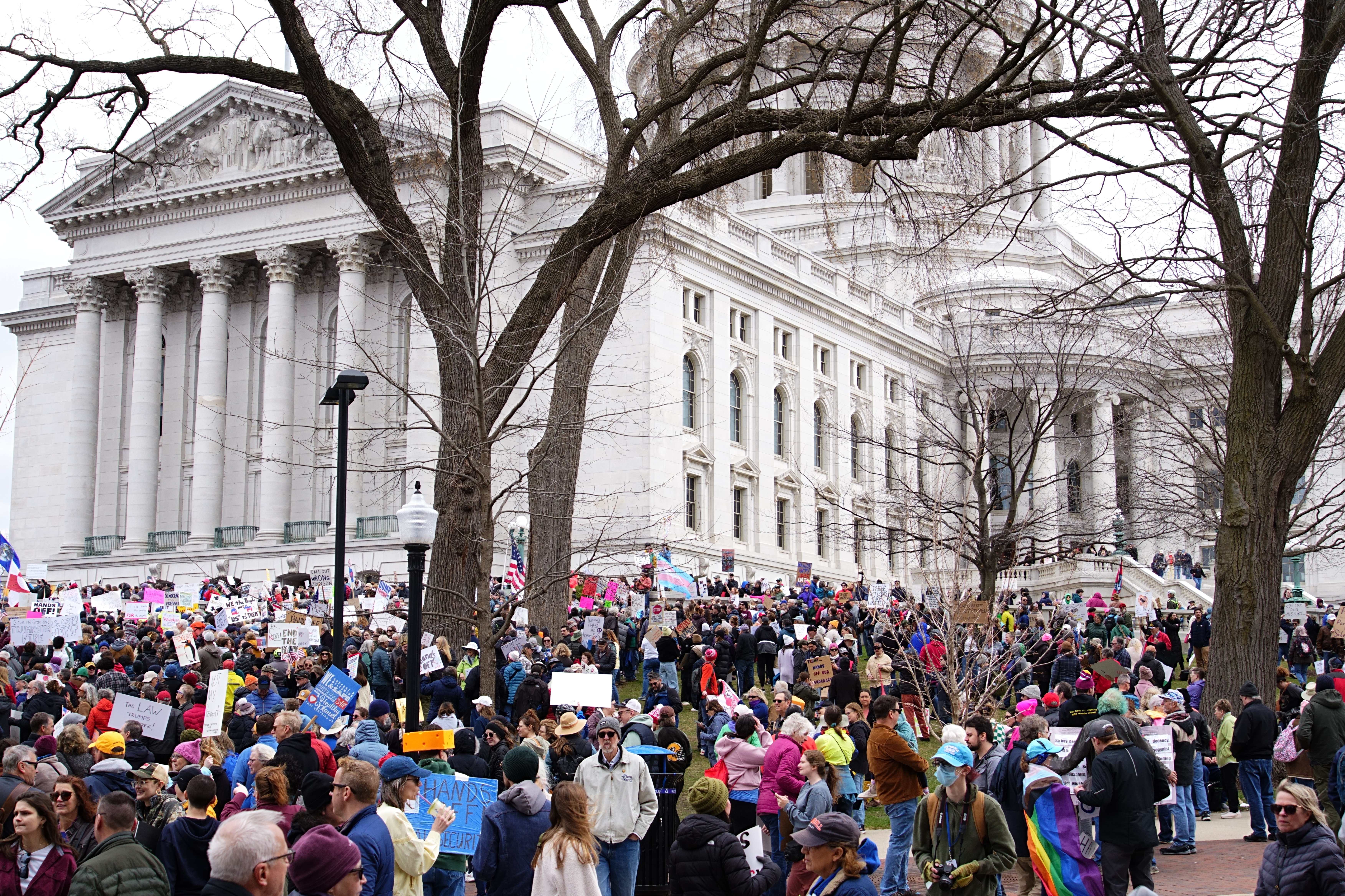 Two sets of national demonstrations occurred yesterday. One was the March for Palestine, and the other was the hundreds of Hands Off! rallies across the nation.
