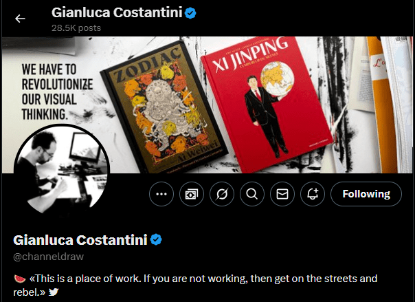 This is a place of work. If you are not working, then get on the streets and rebel. Gianluca Costantini
