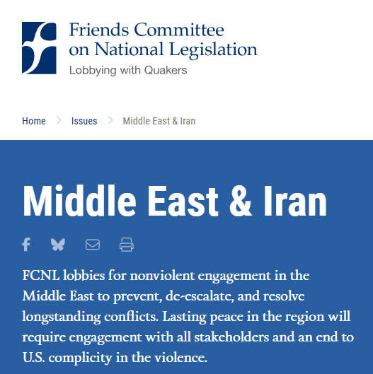 Another Quaker organization, the Friends Committee on National Legislation (FCNL) has lobbied for legislation supporting peace and the Palestinian people in the US Congress for many years.