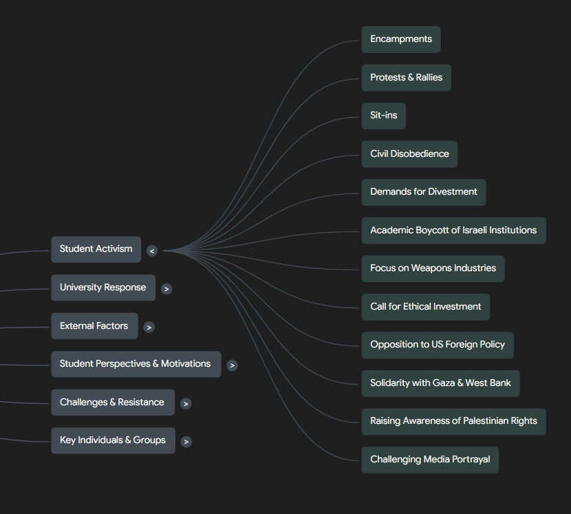 Subject: Review of Themes and Important Ideas in Sources Regarding Pro-Palestine Student Activism in US Universities.
