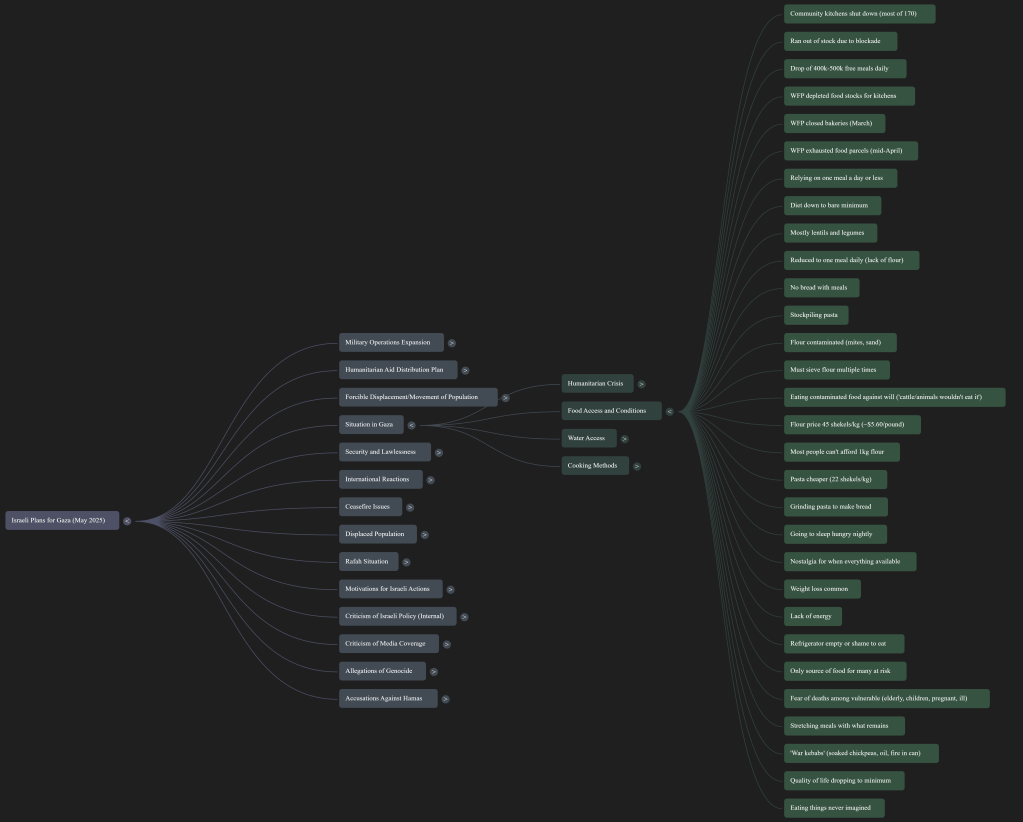 - Context of Severe Humanitarian Crisis: The plan is being considered amid an existing severe hunger crisis in Gaza, exacerbated by Israel’s blockade which has prevented food, fuel, aid, and commercial goods from entering the enclave since early March 2025. This blockade followed the collapse of a ceasefire two months prior. Residents report surviving on one meal a day or less, communal kitchens have shut down, and malnutrition cases are rising.