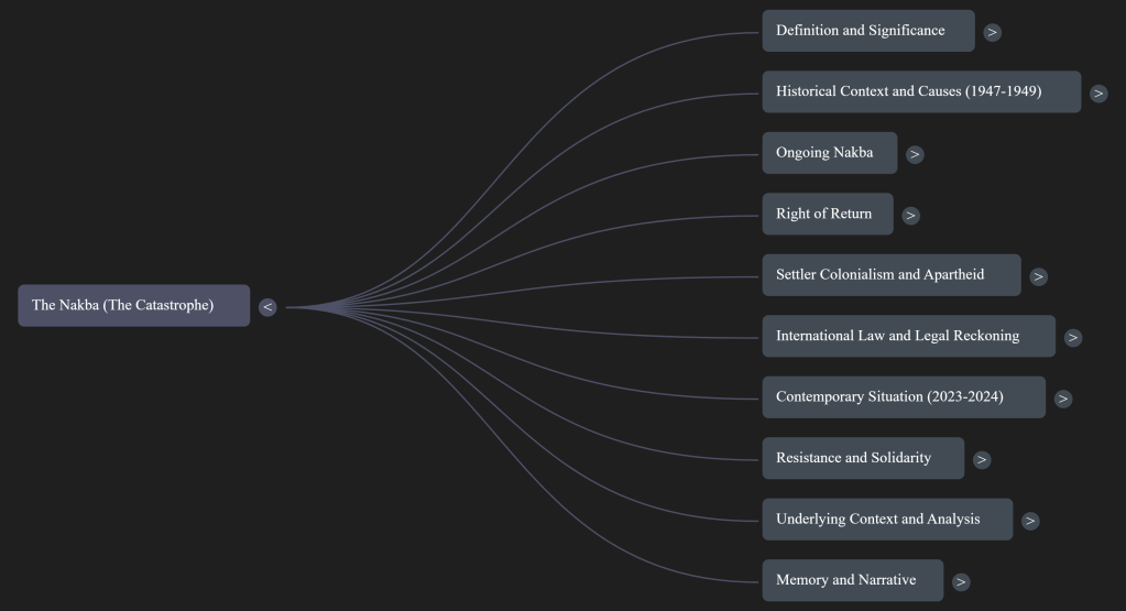 Since the late 1990s, the phrase “ongoing Nakba” (Arabic: al-nakba al-mustamirra) has emerged to describe the “continuous experience of violence and dispossession” faced by the Palestinian people. This term emphasizes that the Nakba is not merely an event in 1948, but an ongoing process that continues to the present day.