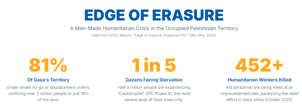 A new report from the American Friends Service Committee (AFSC), The Edge of Erasure, is the latest documentation of the horrors of Gaza.