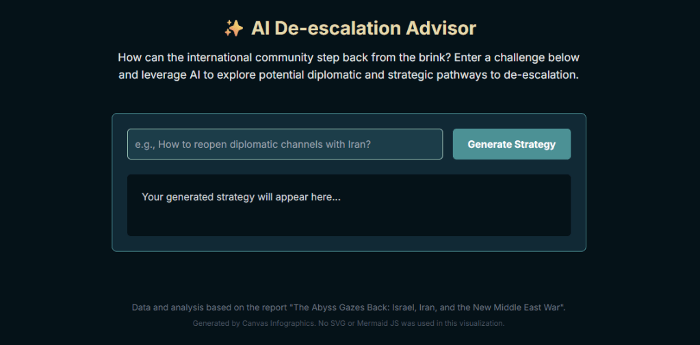 One of the best things I’ve found that AI tools can produce are infographics, which are data visualizations that summarizie complex issues visually. The infographic I created this morning from the sources I loaded into the Israel Iran war project is illustrated below.
