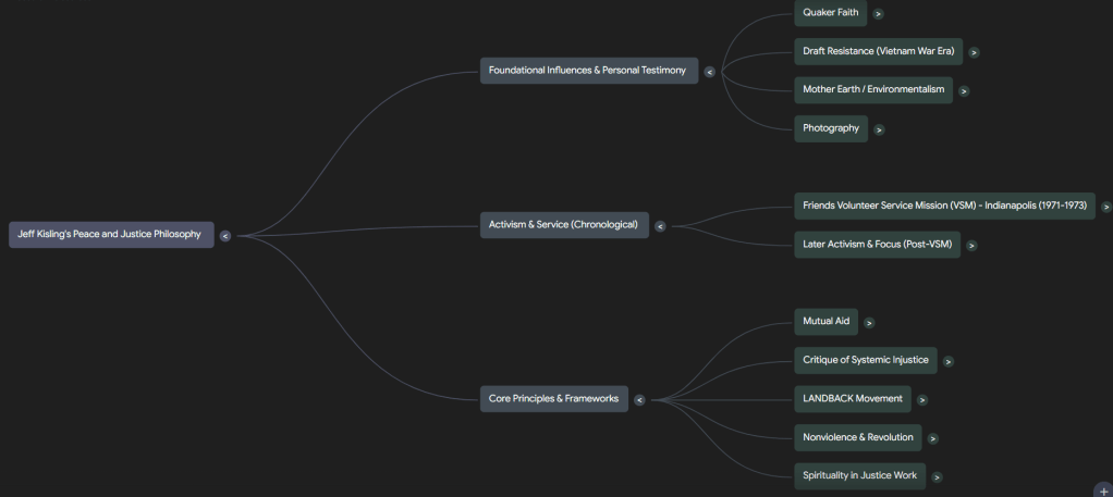 To begin re-evaluating my own peace work, I used the NotebookLM research system, which organized my writings over the years in a number of different ways. That will organize years of things I’ve written which will give me the context to study Eisenstein’s article and other work related to peace I’m discovering.