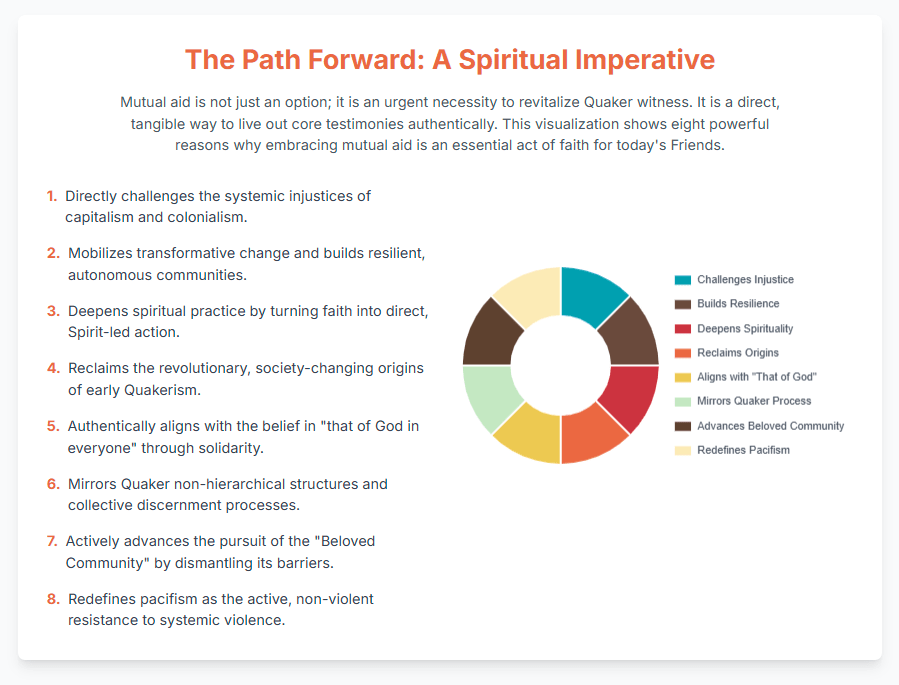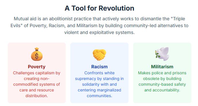 The very act of engaging in mutual aid is about actively building the desired future society in the present through one’s actions and relationships. It is not just about providing services within the existing framework; it is about constructing a new framework, demonstrating that an alternative world is not a distant utopia but an achievable reality. This reframes mutual aid from being a benevolent “good work” to being a profoundly “revolutionary act,” actively manifesting a spiritual vision of a just and equitable world.