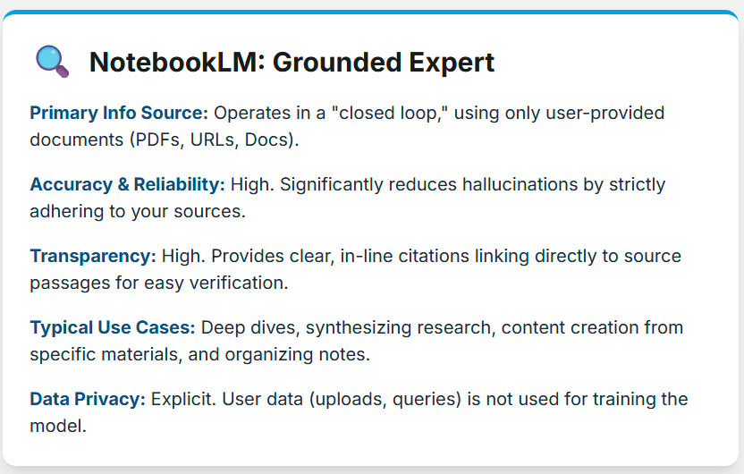 I am going to begin sharing a lot of the analysis I obtain from doing research with two relatively new Google artificial intelligence (AI) applications, Gemini and NotebookLM. I realize many people have negative experiences or ideas about AI. What follows is an explanation of two philosophies of artificial intelligence. I’m using NotebookLM because it is source-grounded or “closed loop”, the difference explained in the following.